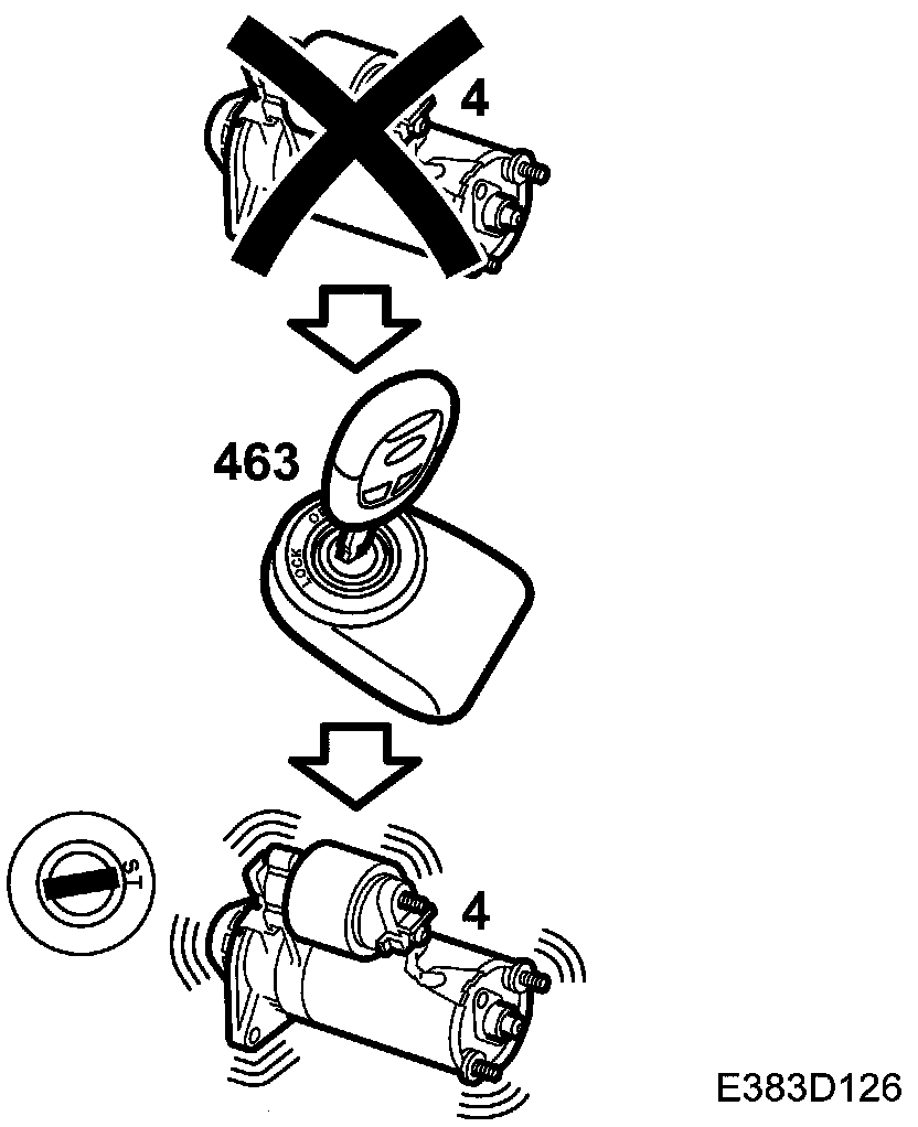 The starter relay is controlled by TWICE. The relay cannot be drawn until an approved transponder code is verified by TWICE after the ignition has been switched on.