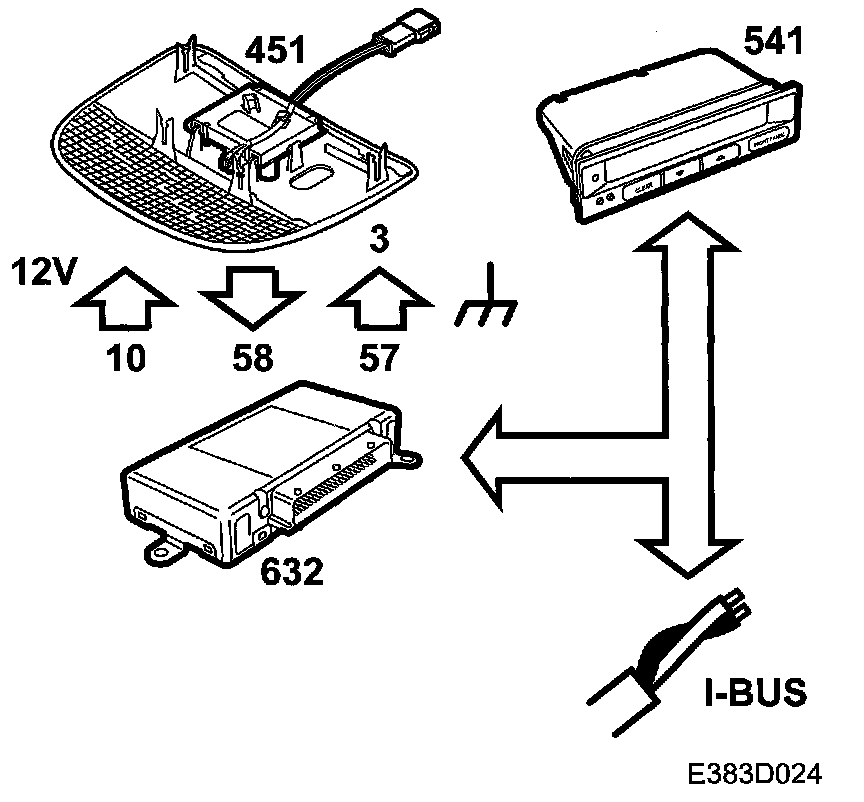 The glass breakage sensor is acoustically sensitive (microphone type) and detects whether a car window has been broken. It is integrated in the rear ceiling lamp and is connected to TWICE on the following pins: