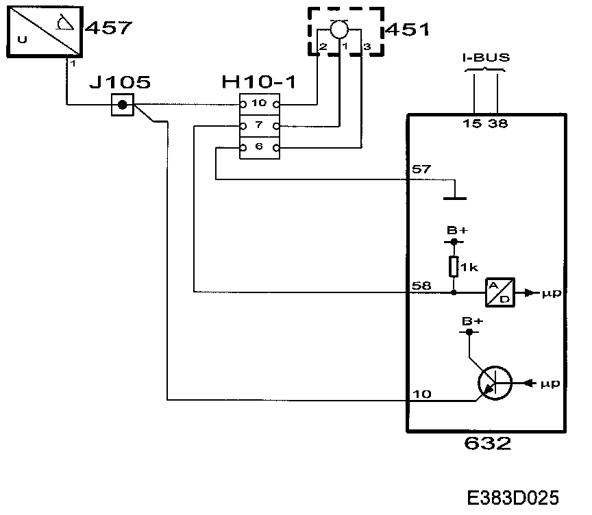 When the anti-theft alarm is armed, the glass breakage sensor is activated when it receives a power supply of +12 V from the control module to pin 2.