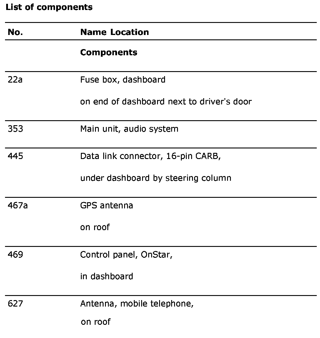 List of components