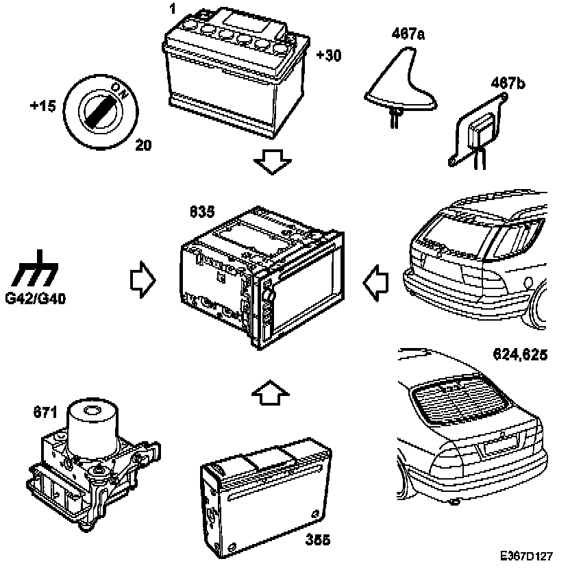 ^ Antenna signal, GPS (467a/b)