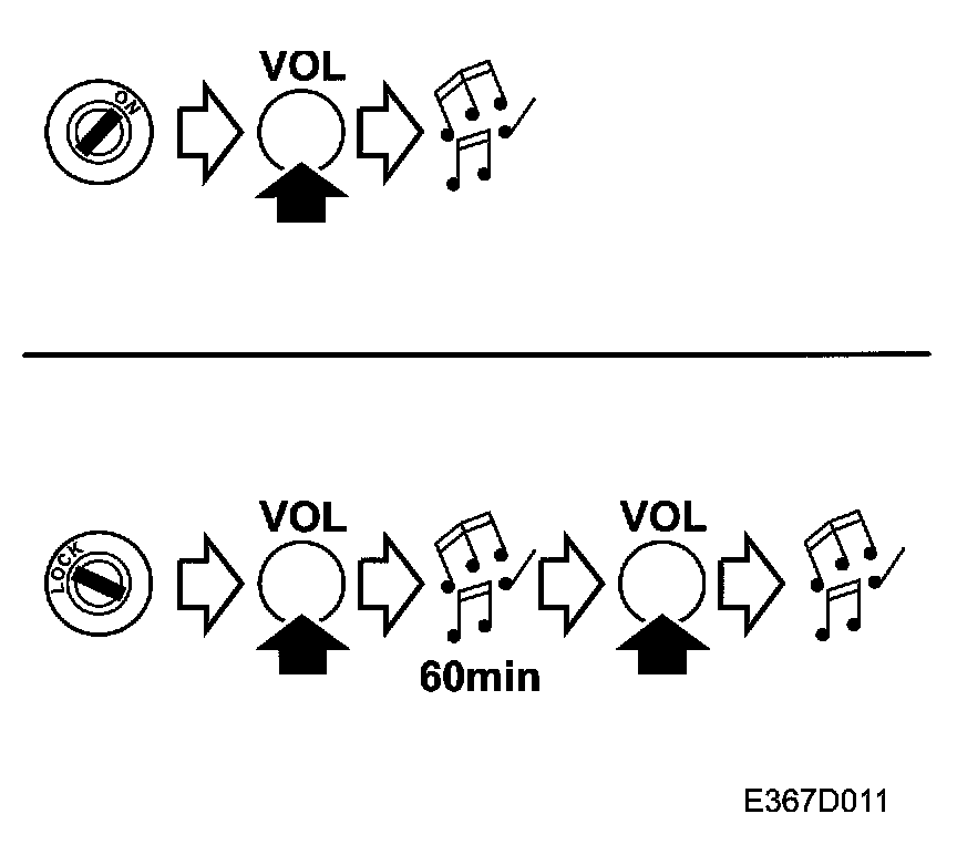 If the ignition is turned OFF and the key remains in the lock, the audio system will automatically stop one hour after the button was last activated. This applies even if the audio system is turned on when the key is not in the ignition.