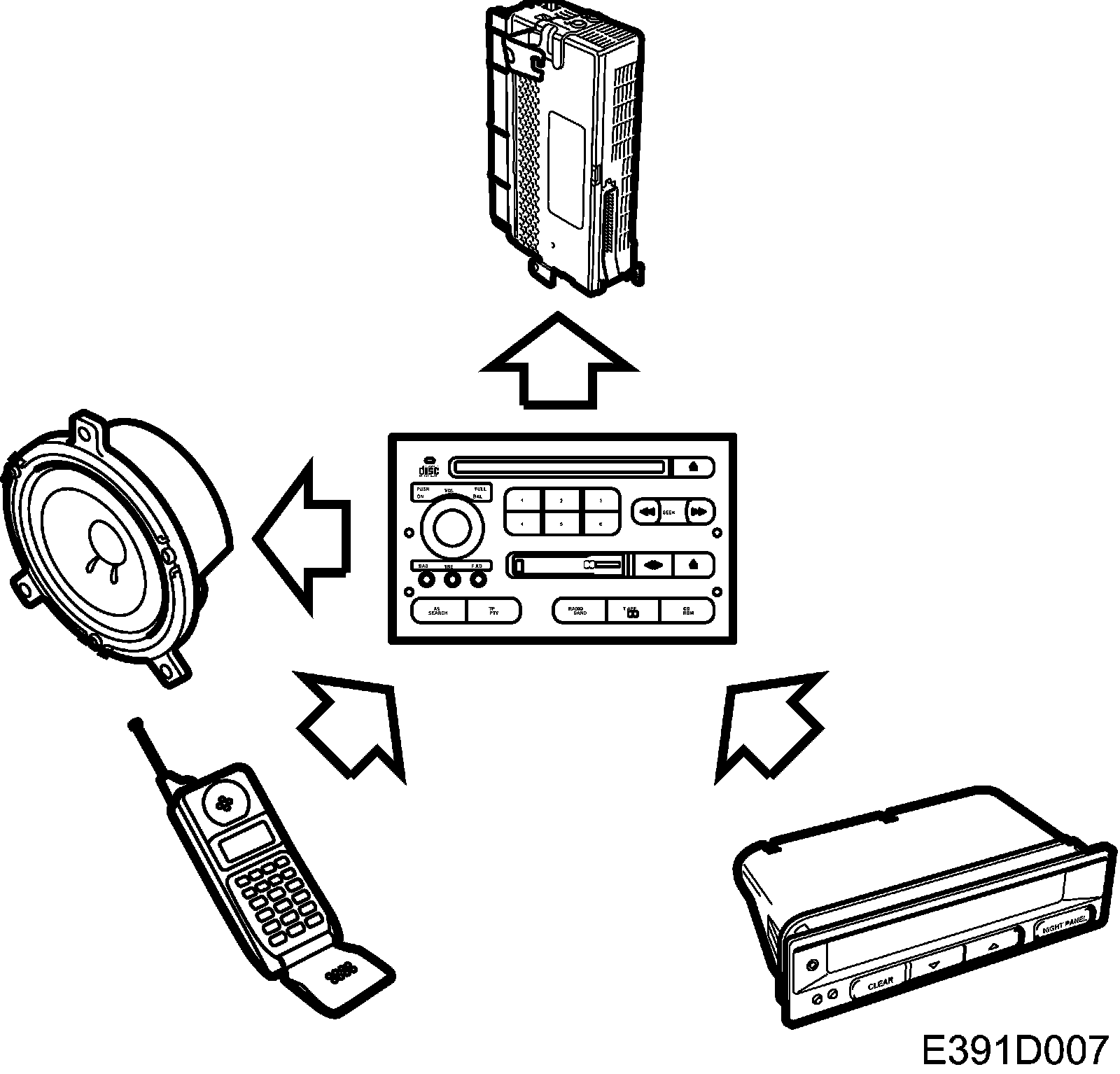 - Disconnects the normal sound from the selected source during a telephone call. This is achieved by sending a mute signal to the main unit, which then disconnects the normal sound to the speakers and the signal to the external amplifier where relevant.