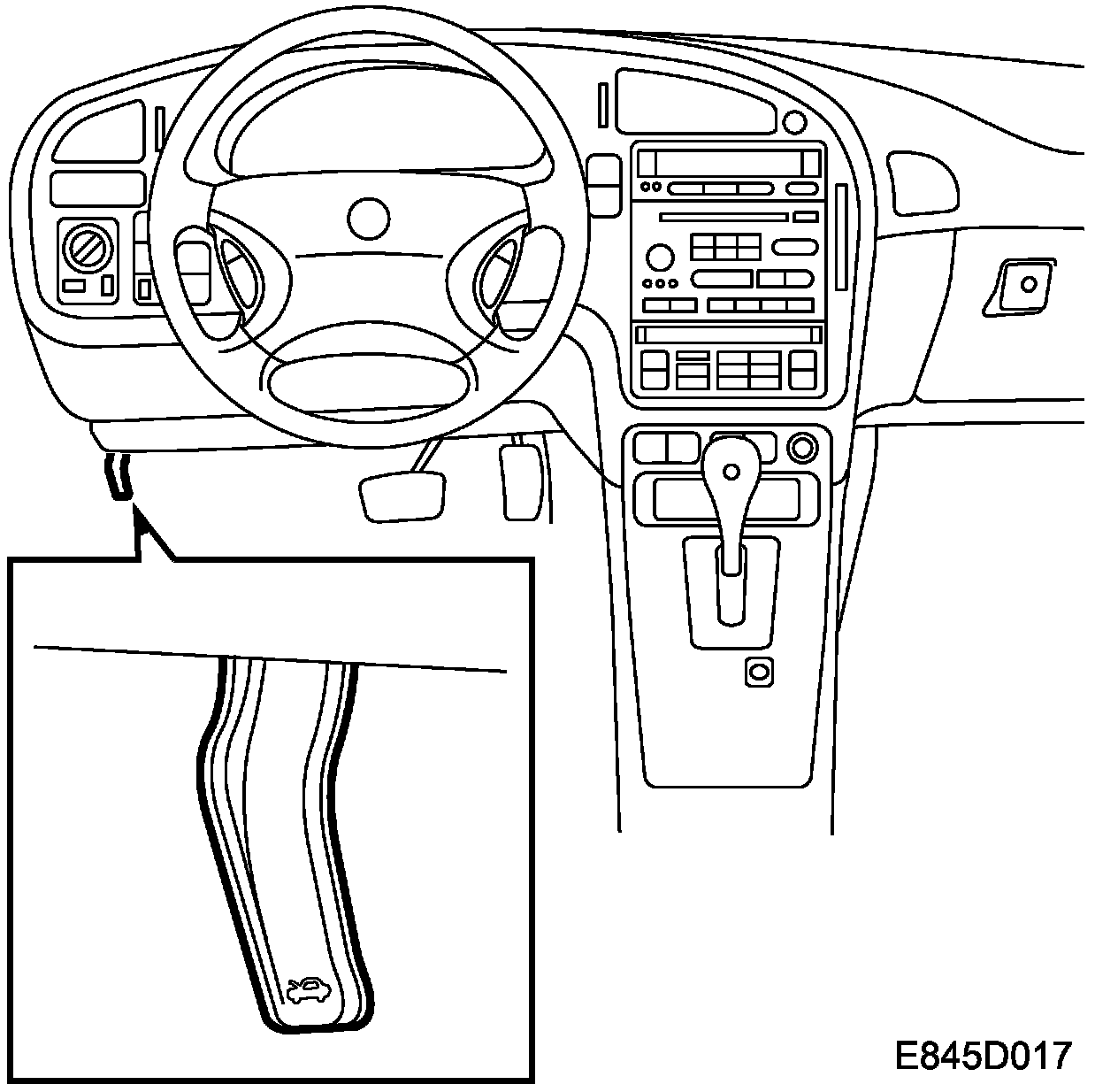 The bonnet lock is operated by a wire from the bonnet release lever on the left-hand side of the cabin under the dashboard on LHD cars and on the right-hand side on RHD cars.