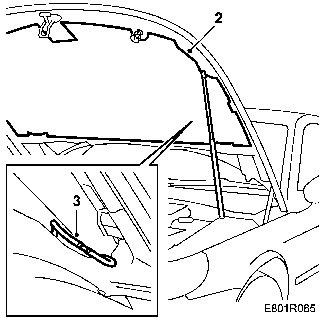 NOTE: When changing the bonnet: Remove the front seal and sound insulation (with a pair of angled flat nose pliers) from the old bonnet and fit them on the new one. Also remove the washer jets, locking pins and safety catches and fit them to the new bonnet.