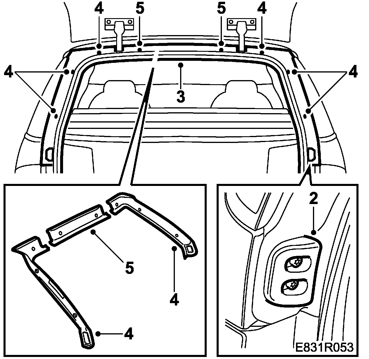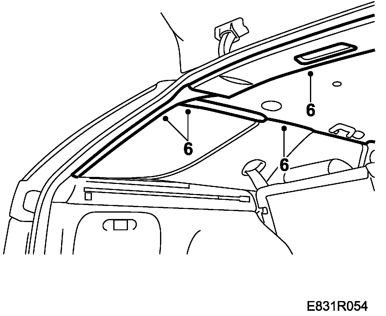 11. Hold up the headlining and fit the roof cover, D-pillar trim and covers between the C and D-pillars and the cargo net holders.