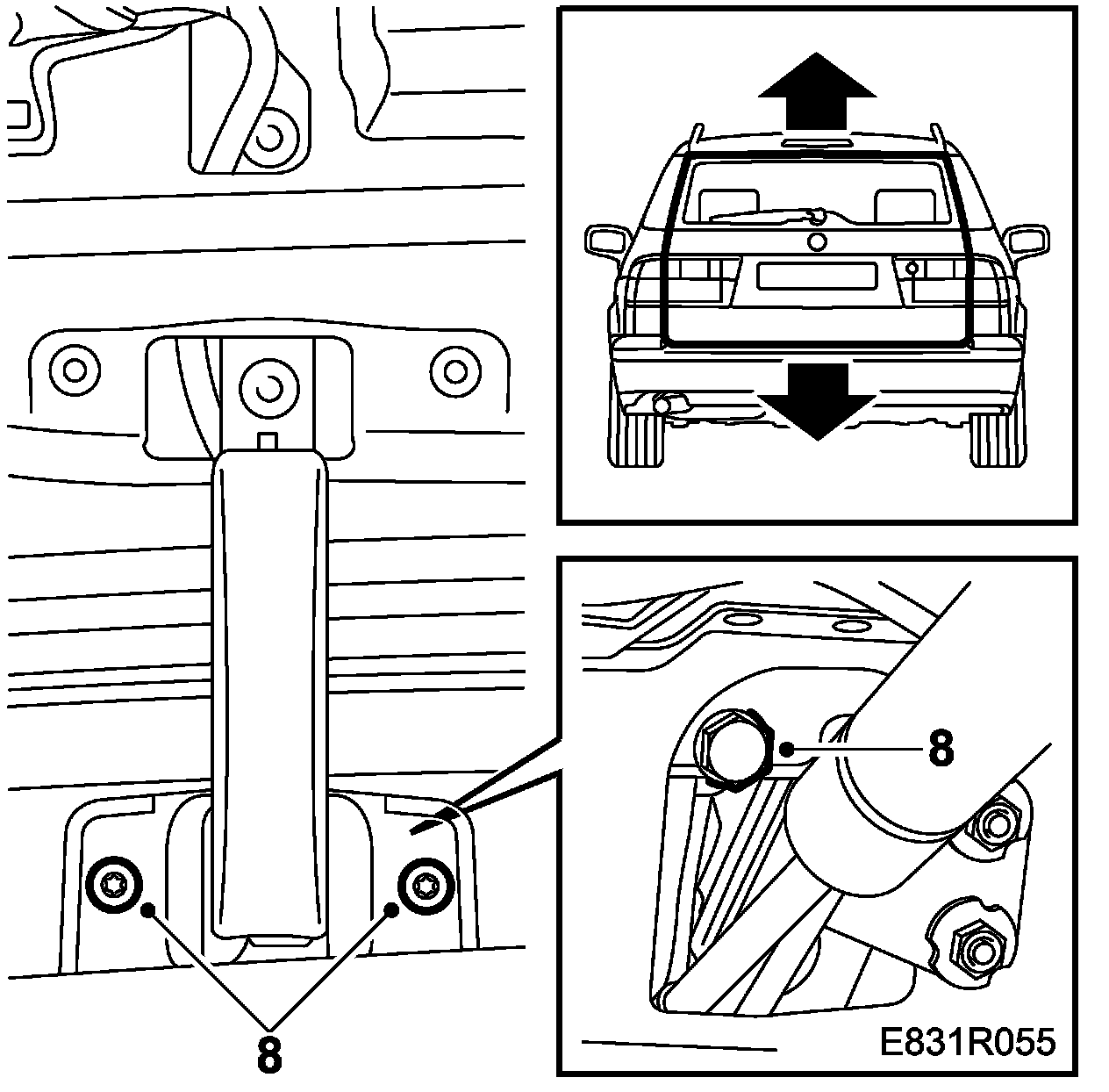 8. Undo the three screws on each hinge (one screw is on the inside).