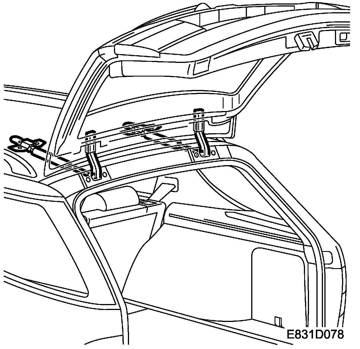The tailgate has two gas lift springs. The gas springs are located on each side of the tailgate aperture between the roof and the headlining. They are attached to ball joints on the hinges and the roof. If an air spring comes loose, e.g. during a collision, the front attachments are protected to prevent the air spring from falling down or being thrown forward in the car.
