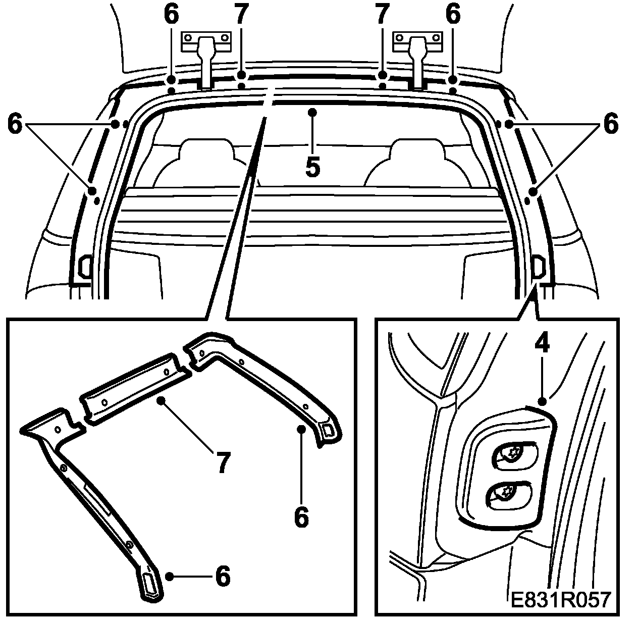 5. Pull off the weatherstrip sufficiently to reveal the mouldings.