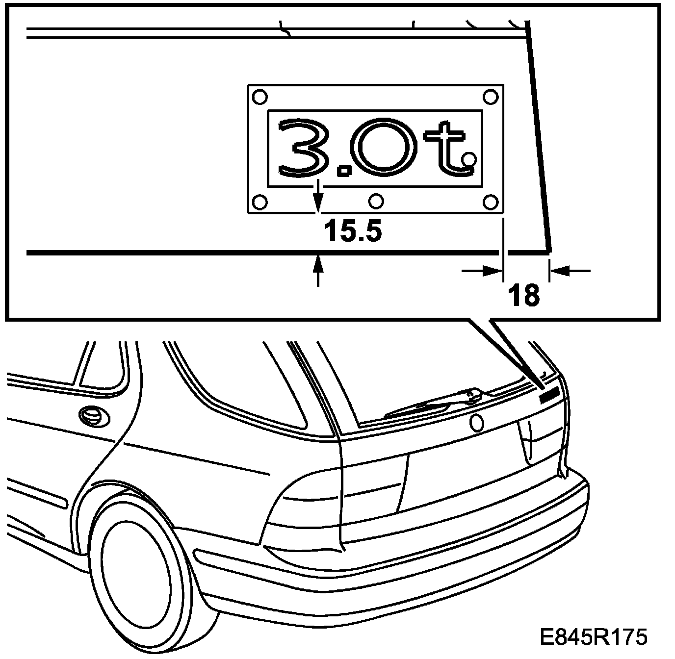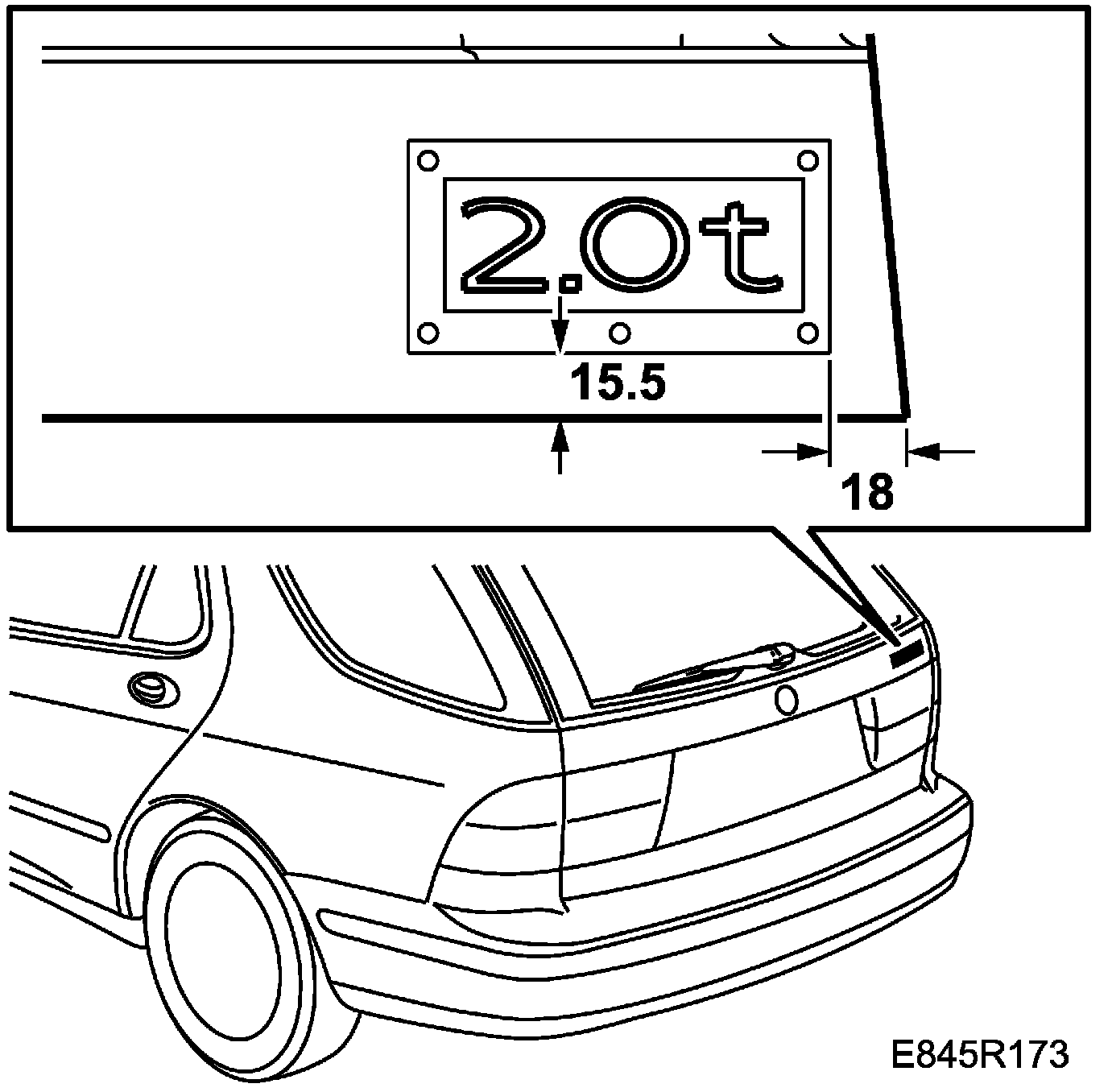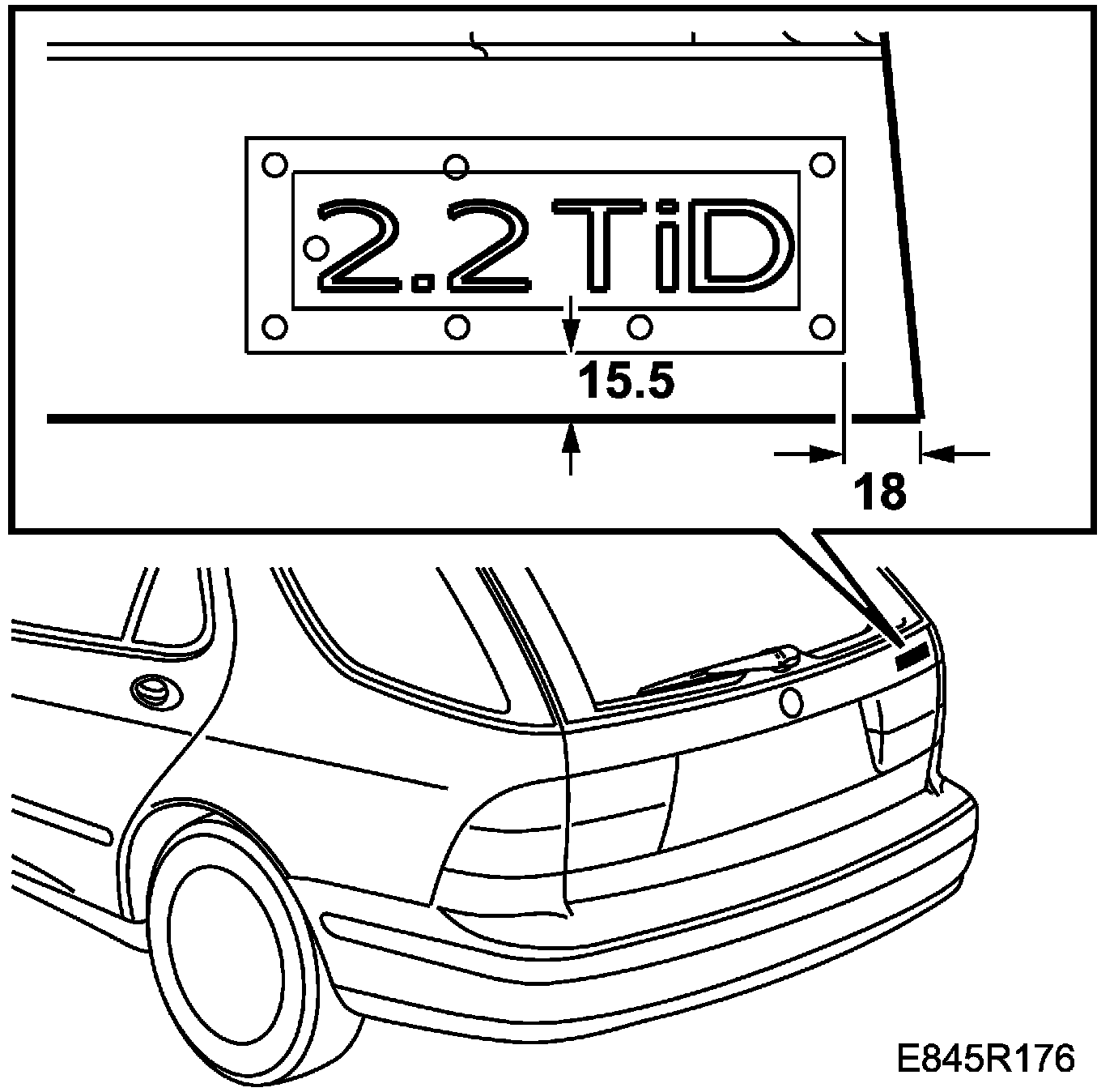 2. Fit the frame on the tailgate following the measurements of the illustration and affix the emblem.