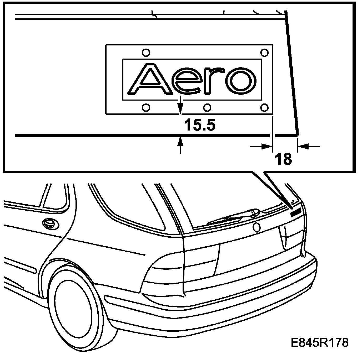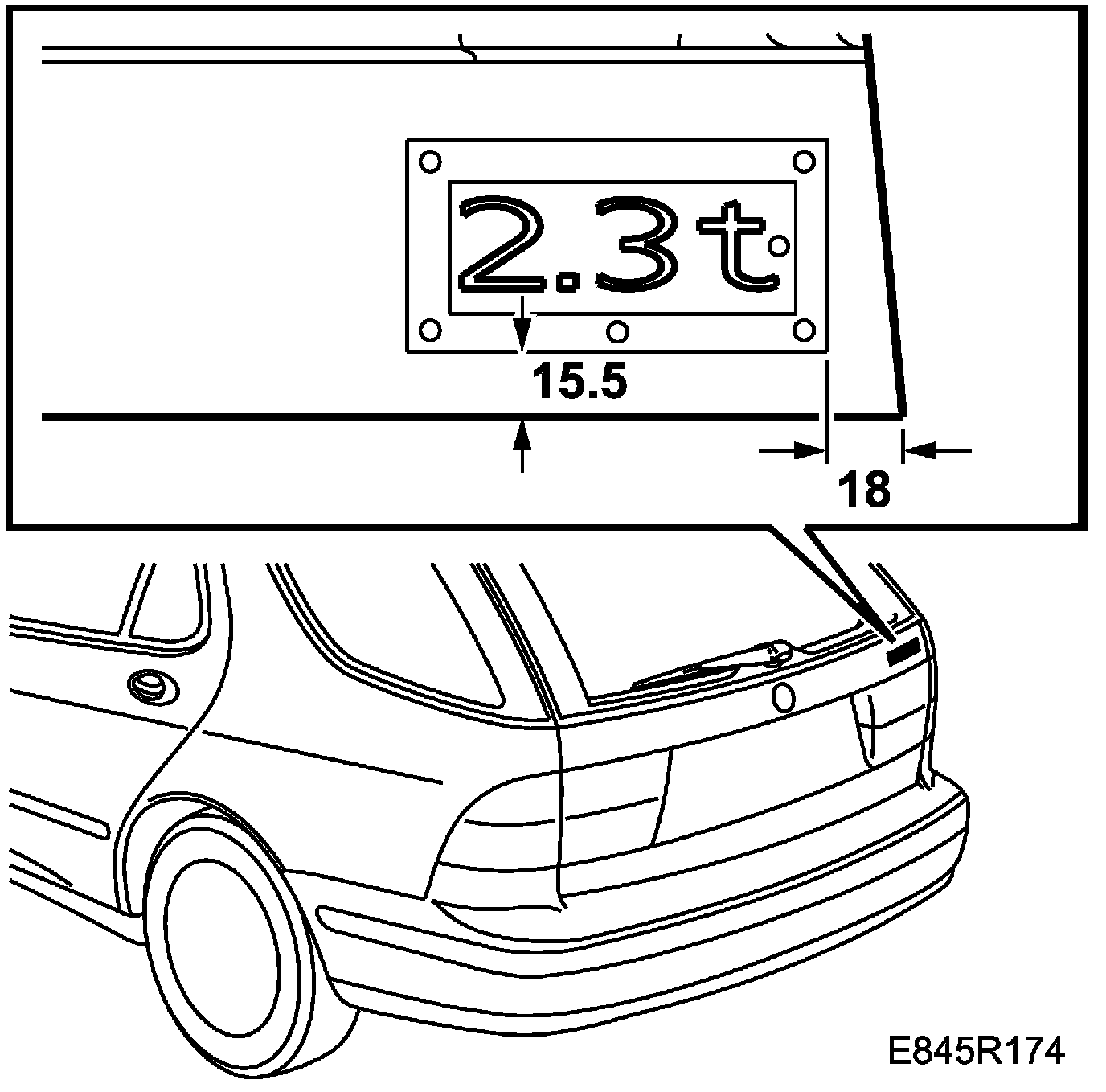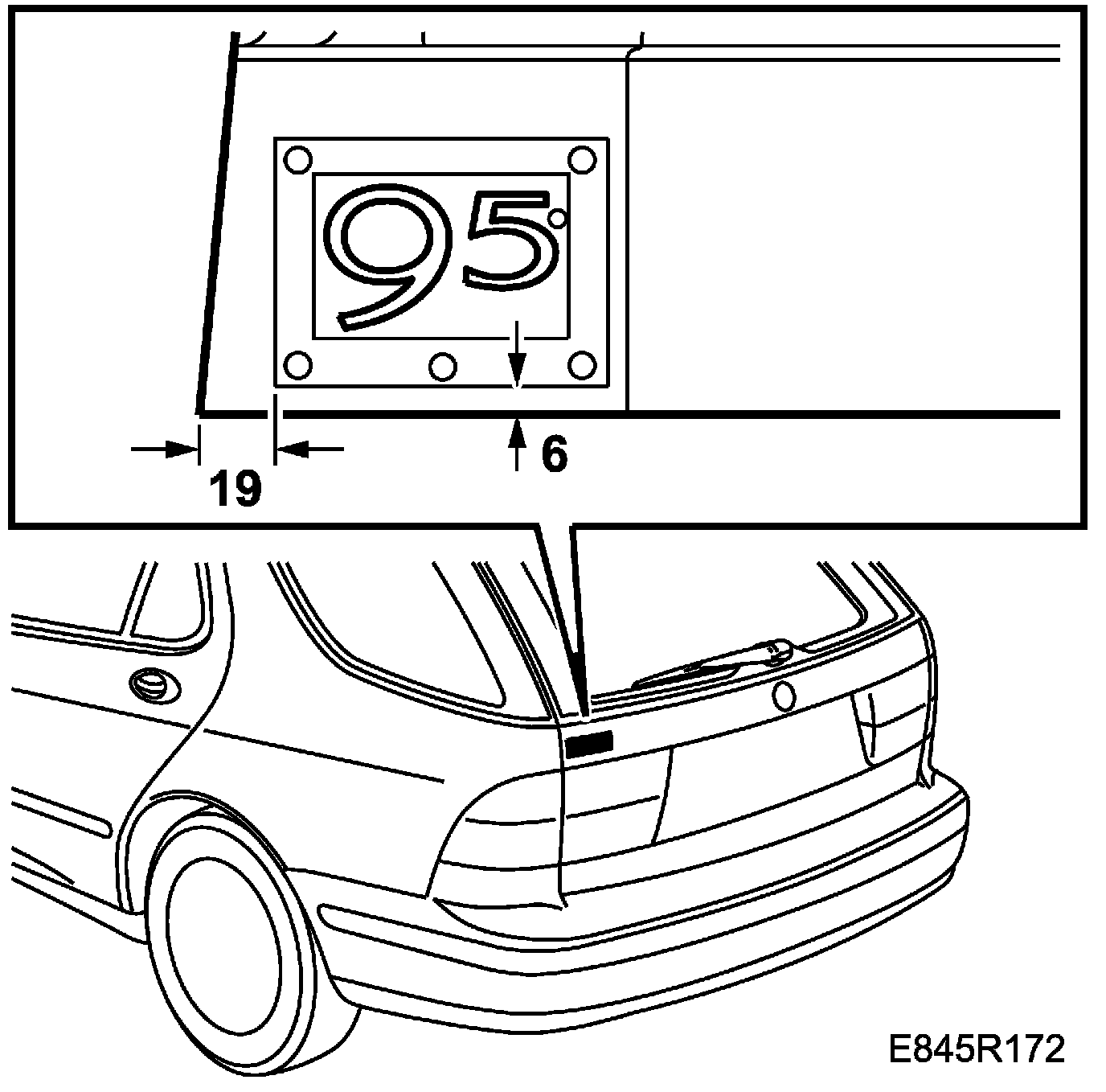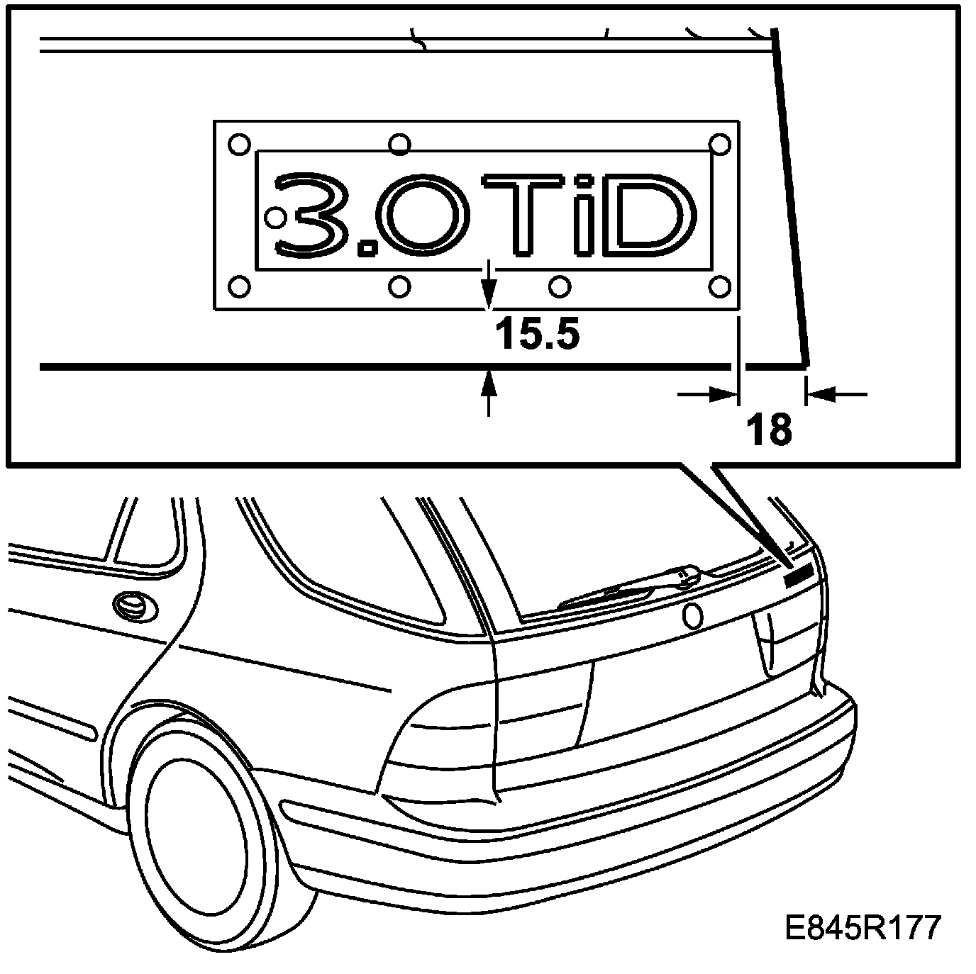 2. Fit the frame on the tailgate following the measurements of the illustration and affix the emblem.