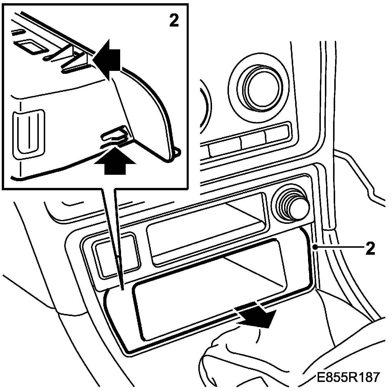 2. Withdraw the ashtray holder while carefully bending the clips aside, first the 2 lower ones and then the 2 upper ones, using a screwdriver.