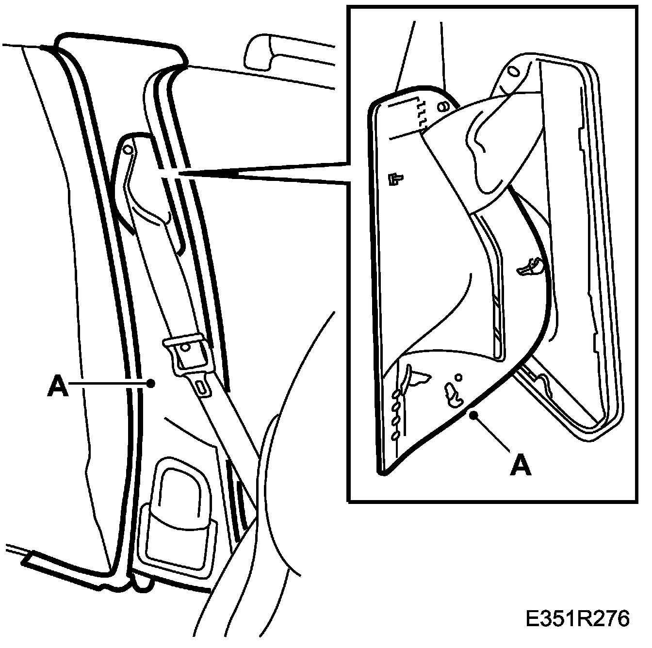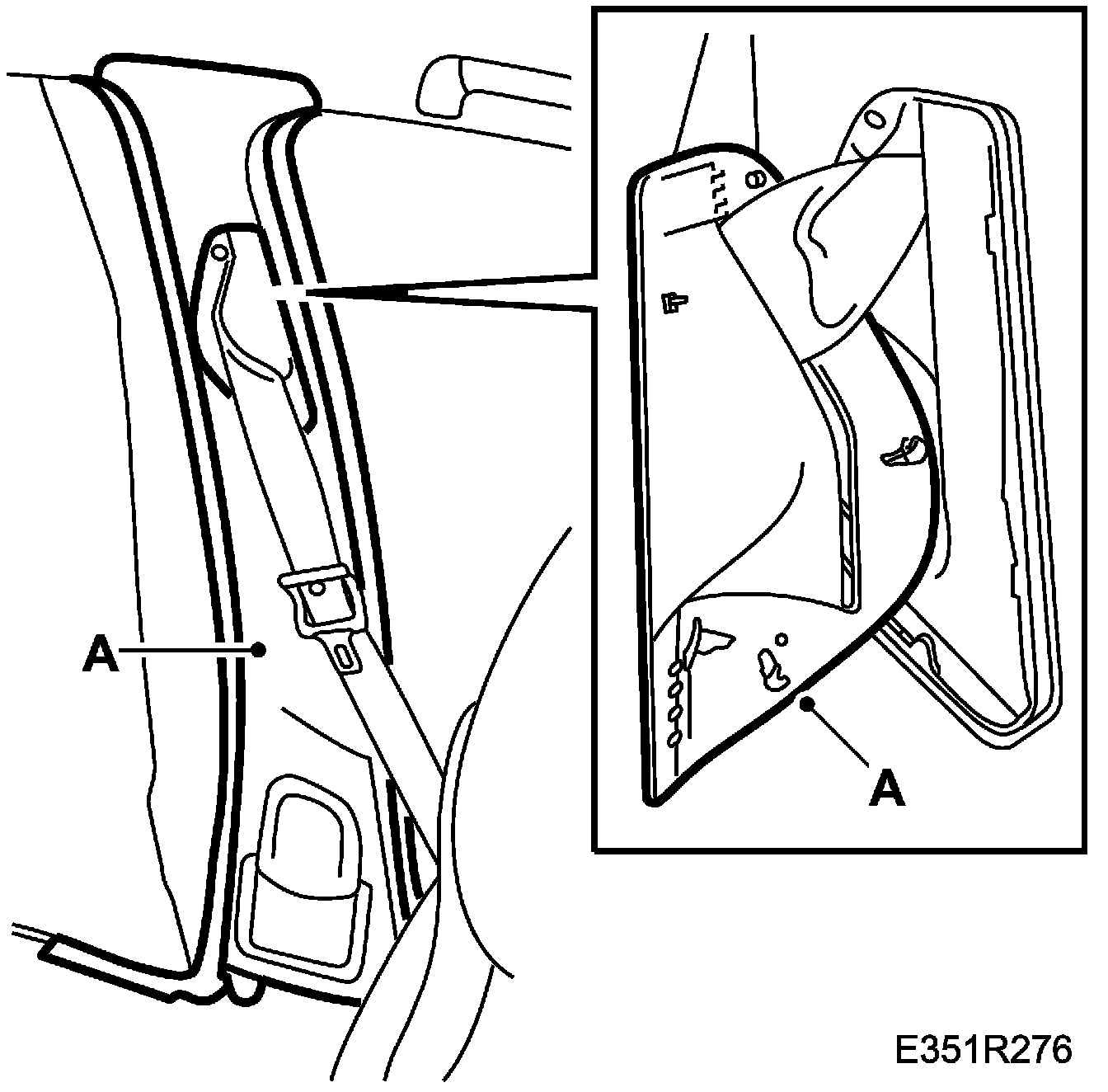 14. Fit the B-pillar trims (A). Check that the belt runs correctly.