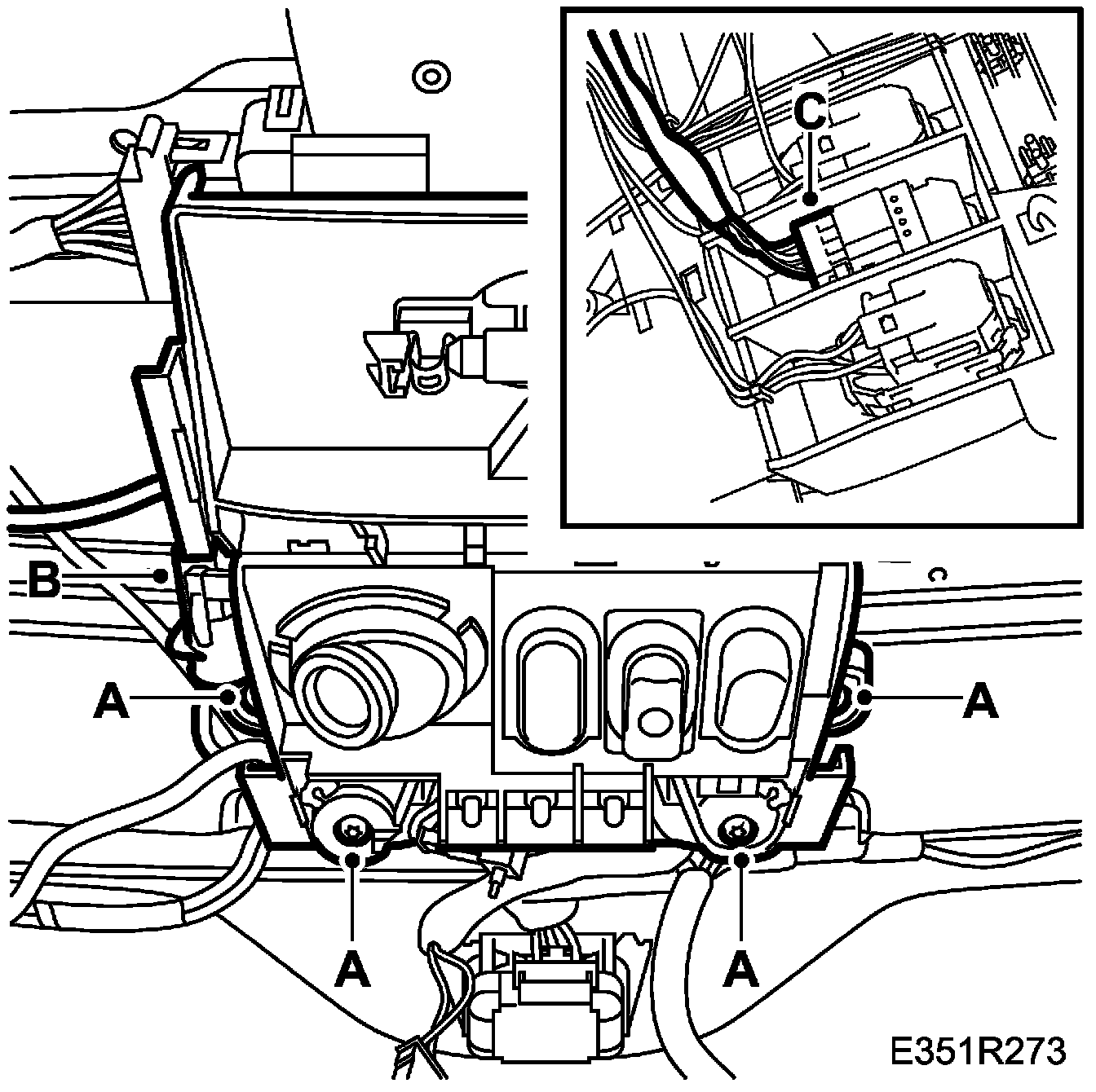 21. Unplug and separate the connector (B) and unplug the connector for the sunroof (C) if fitted.