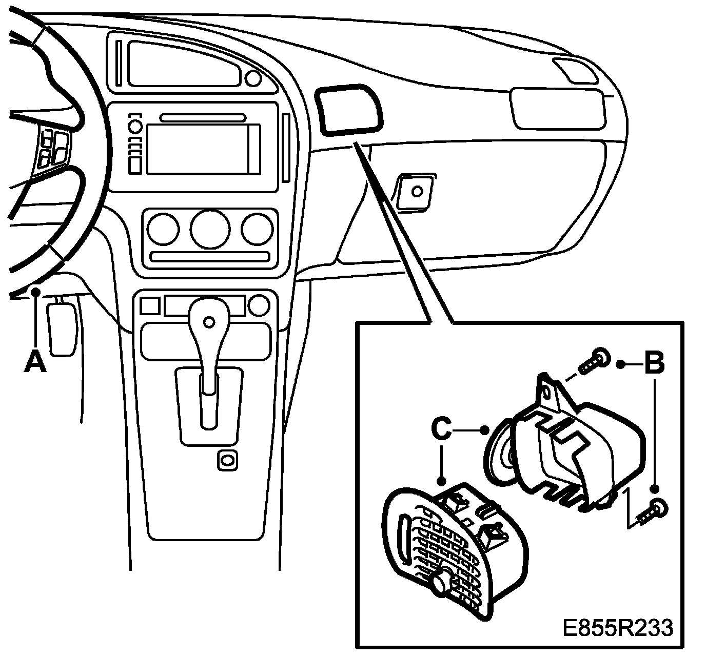 2. Undo 3 screws (B) on the rear of the instrument panel.