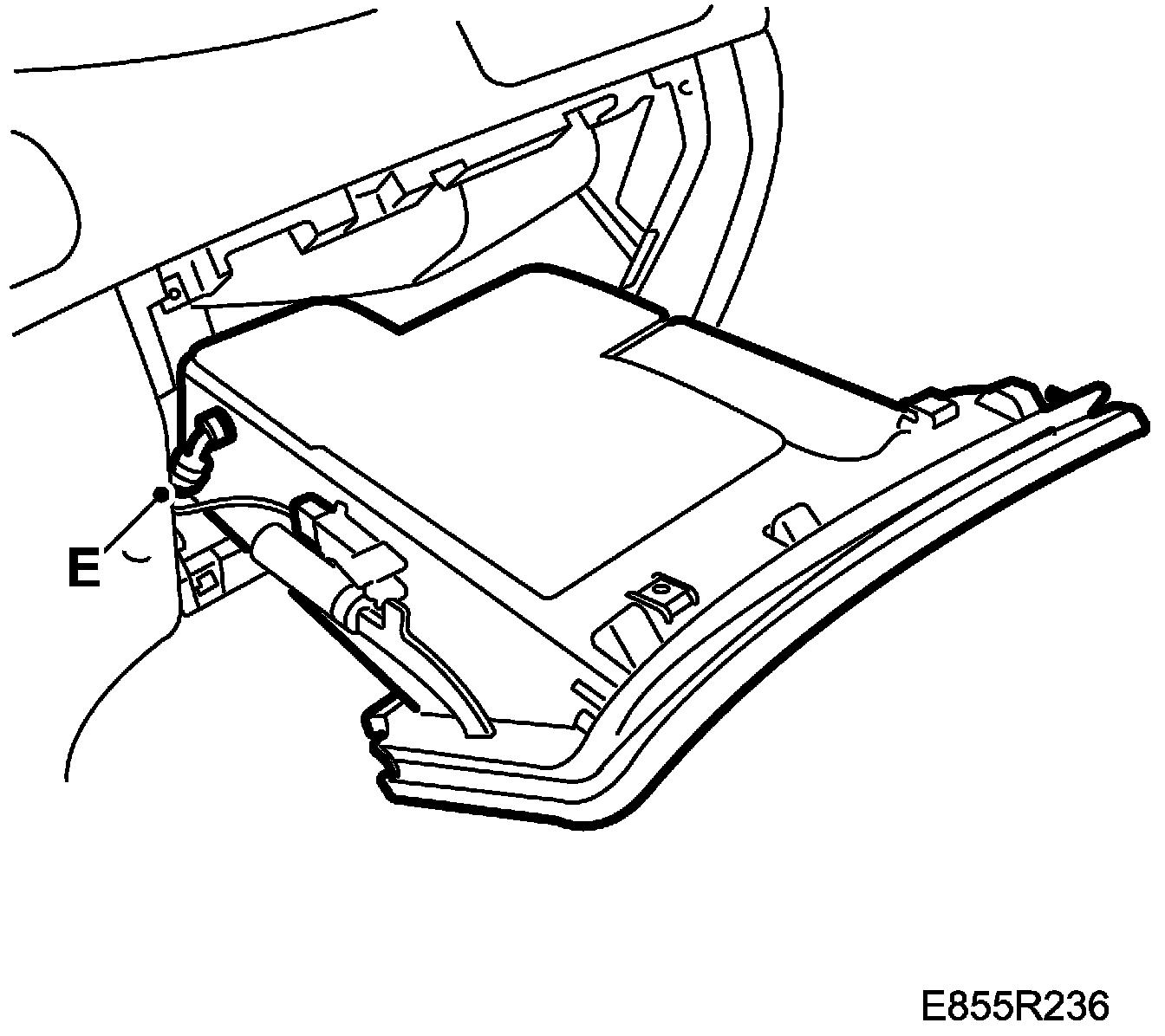 Detach the cooling hose from the heating and ventilation unit before lifting out the glove box (E).
