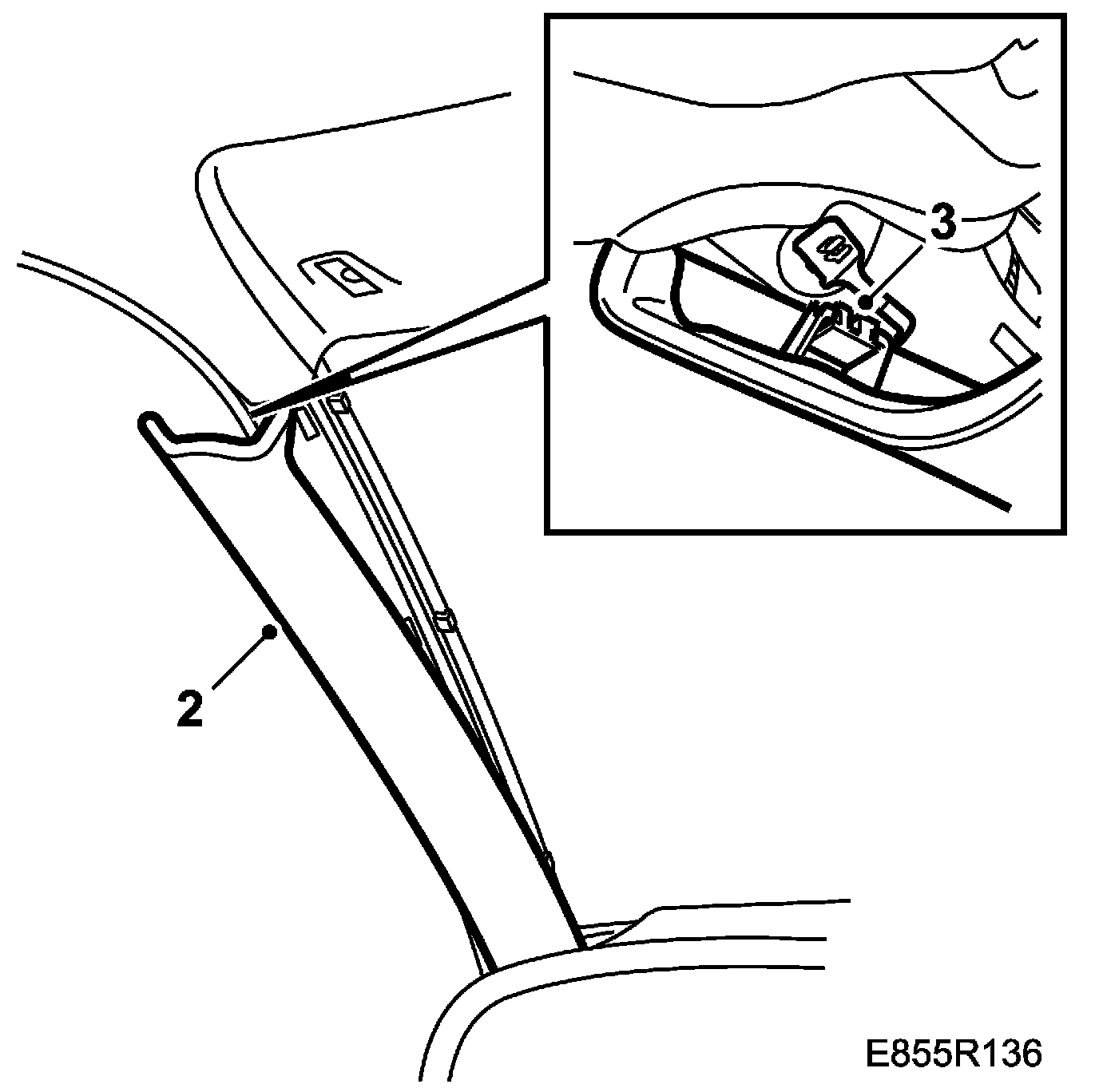 WARNING: Take care not to damage or loosen the energy absorbers. Damaged or loose energy absorbers must not be refitted. If the occasion should arise, the entire headlining must be changed. Damaged energy absorbers may impair head protection in case of a collision.