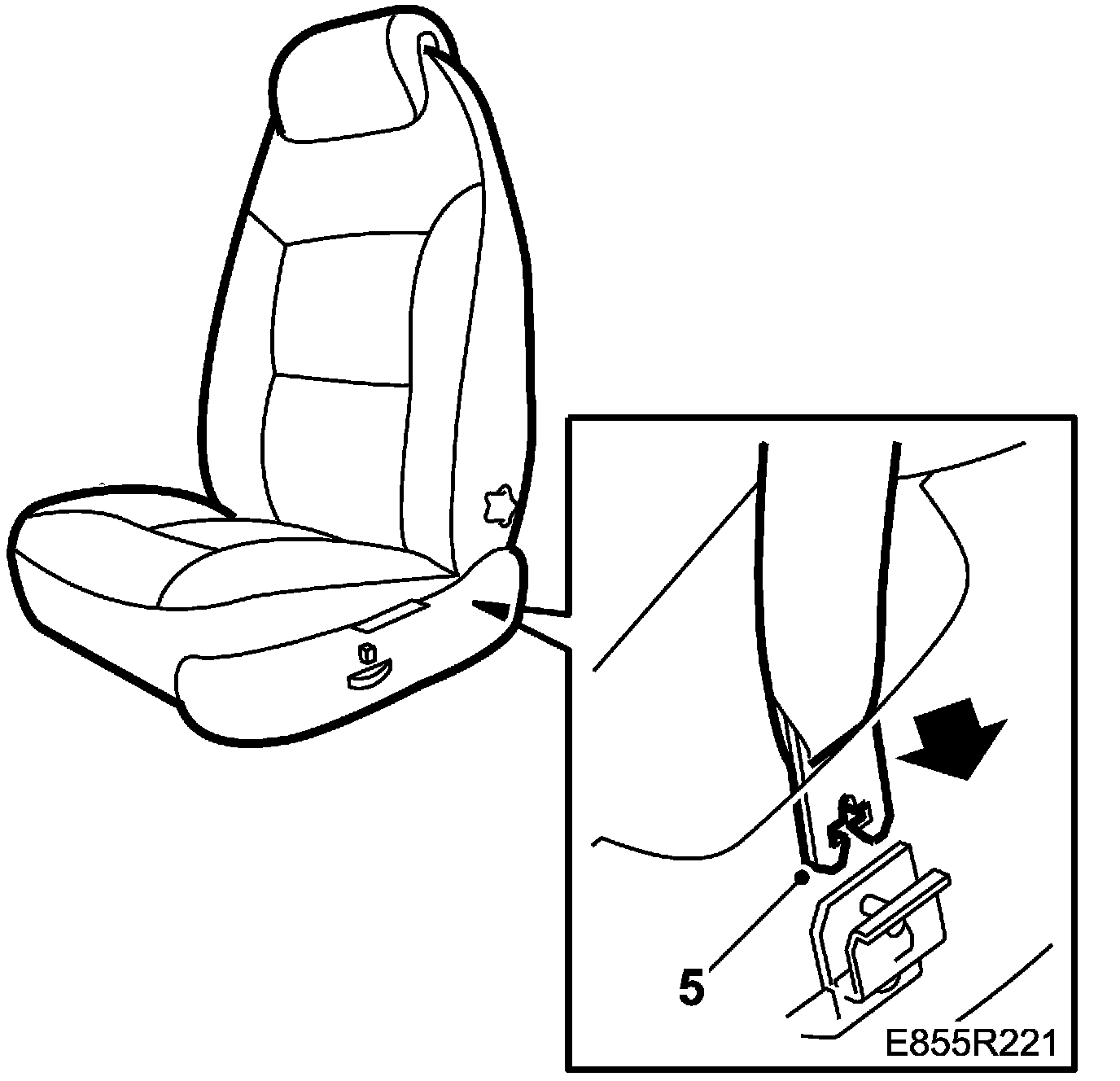 5. Fit the seatbelt anchorage in the seat.