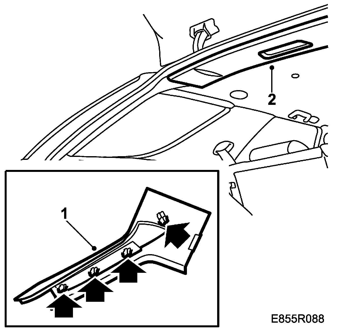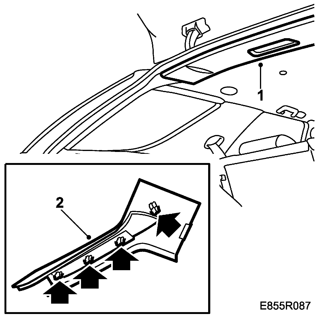 1. Detach the rear roof covering so that clearance for the D pillar trim is obtained.