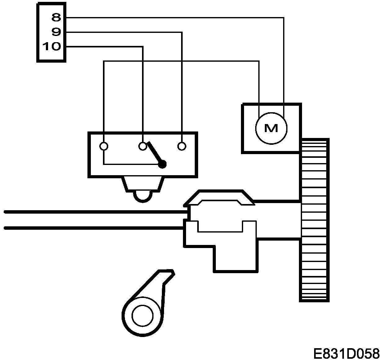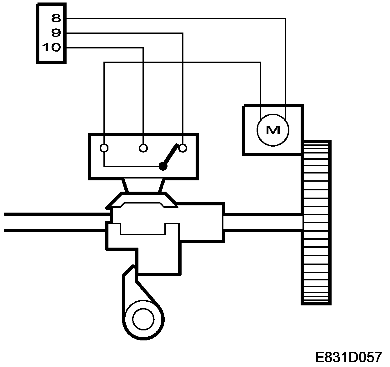On the electric motor there is a cam, which regulates the position of the microswitch. The microswitch is connected to the TWICE control module from pins 9 and 10 to pins 42 and 22.