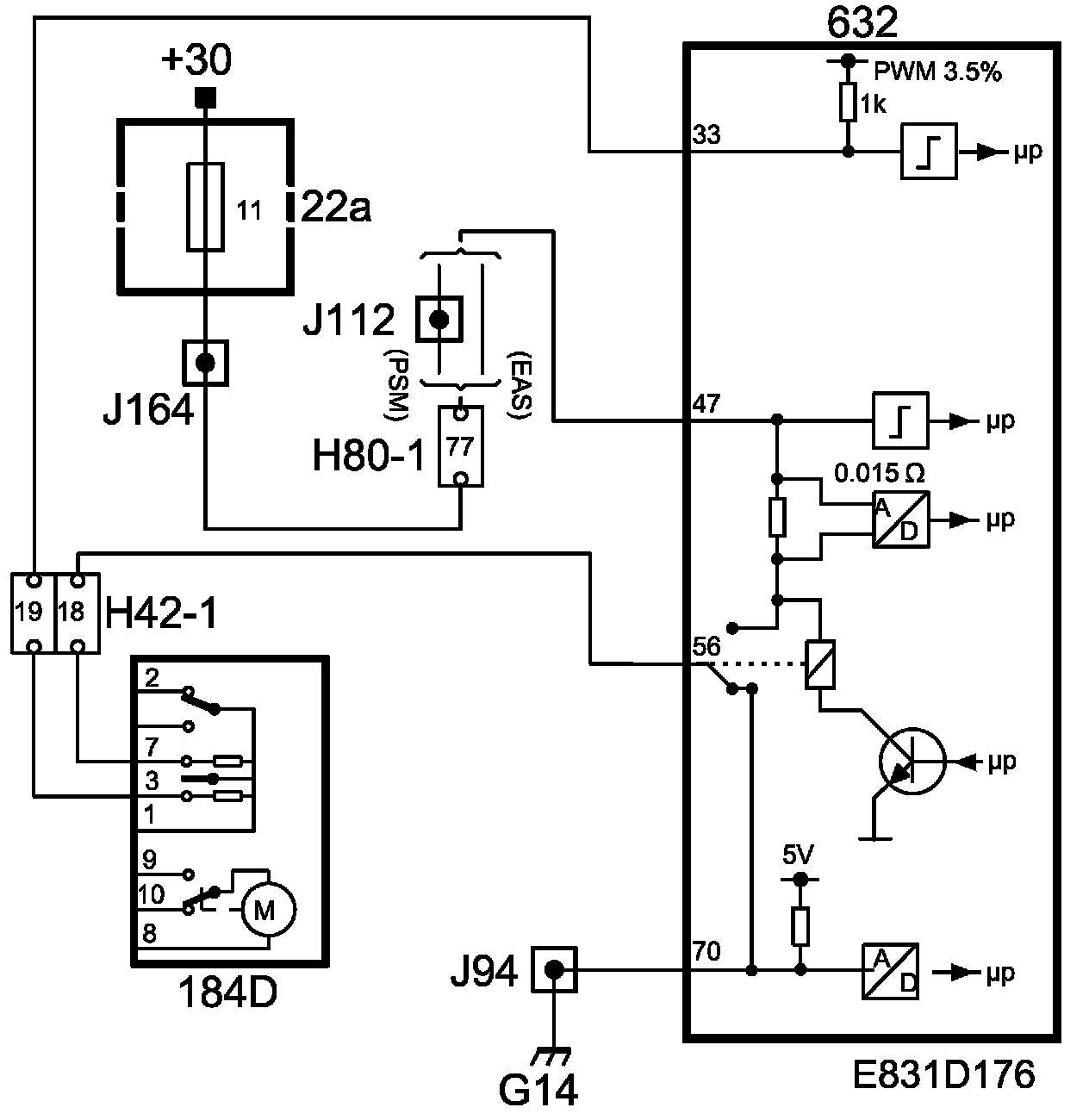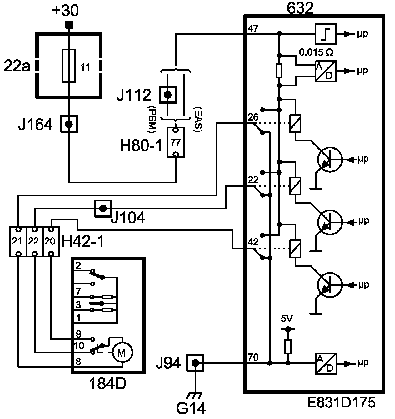 1. When the car is not locked, the microswitch is in position pin 10. When the electric motor is supplied with current from pin 22 on the TWICE control module and the central locking system is locked, the microswitch position is changed by the movement of the electric motor to pin 9.