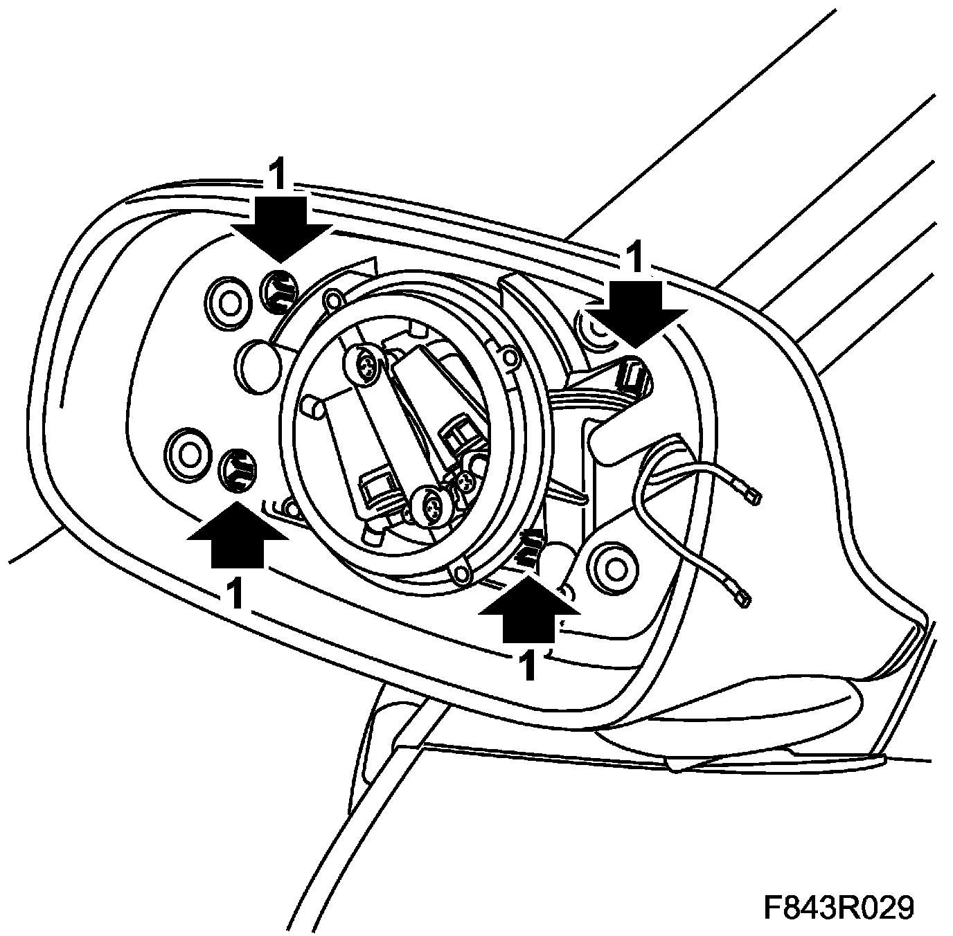2. Fold the door mirror forward and check that the clips hold in the holes.