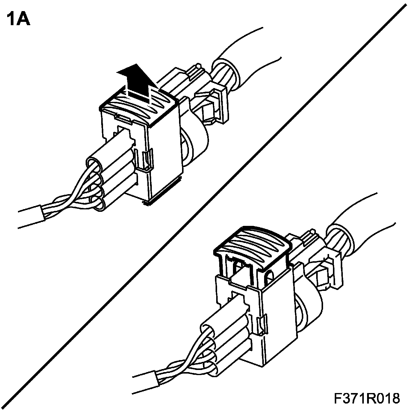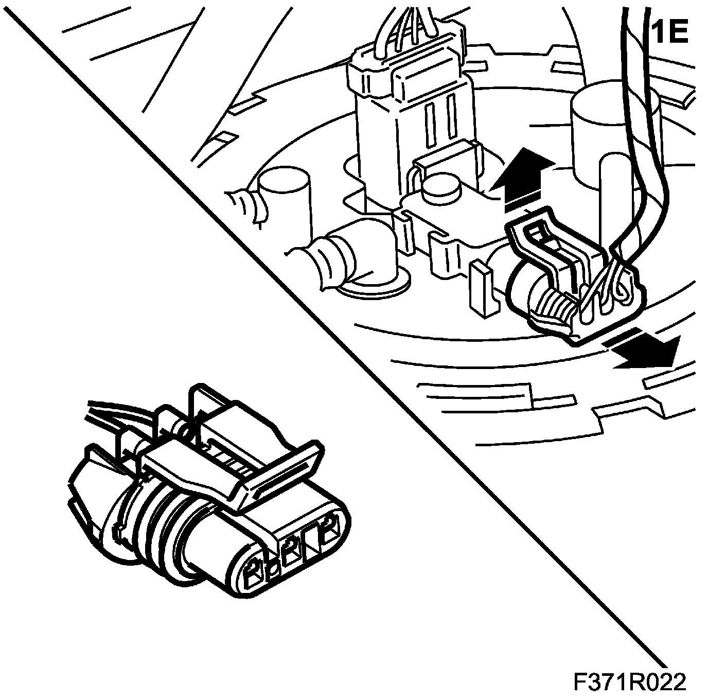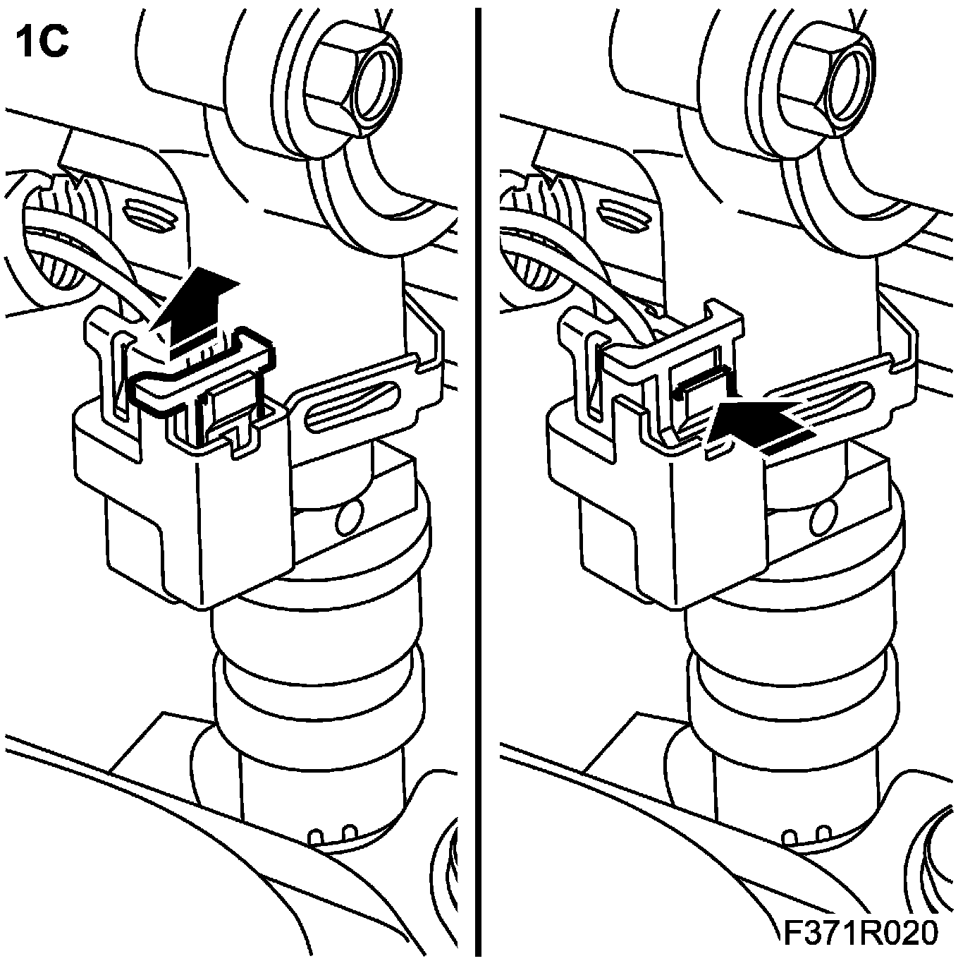 1.E. Lift up the lock tab to unlock the connector.