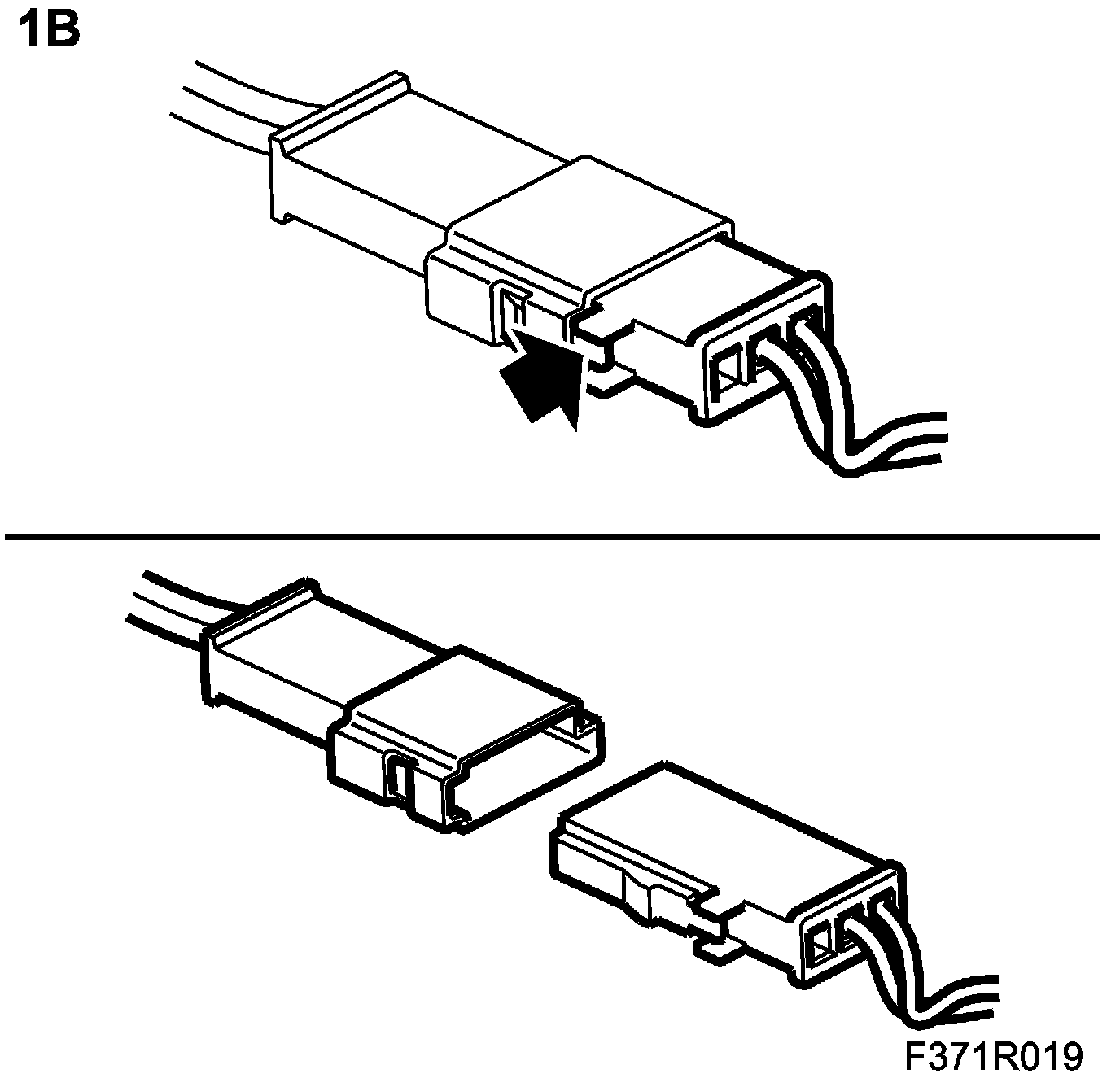 1.B. Press in the lock tab to unlock the connector.