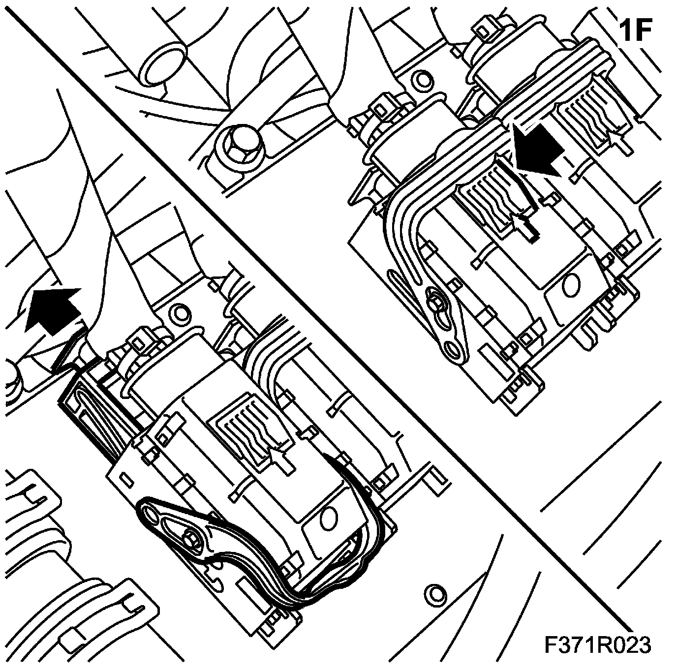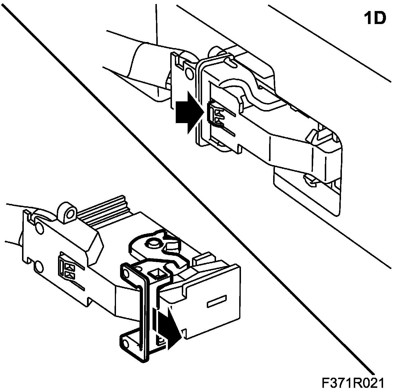 1.F. Press in the connector lock tab to release the brace. Release the connector slide while pushing the brace forward.
