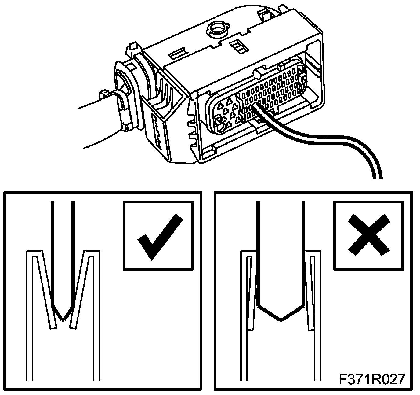 3. To check the connector clamping force, use a test cable with the right pin size (from kit 86 12 731).