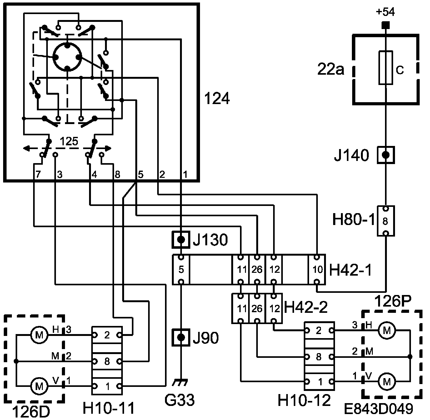 Manual adjustment of door mirrors by means of the switch is not possible. One or all motors unserviceable. Applies to door mirrors both with and without memory.