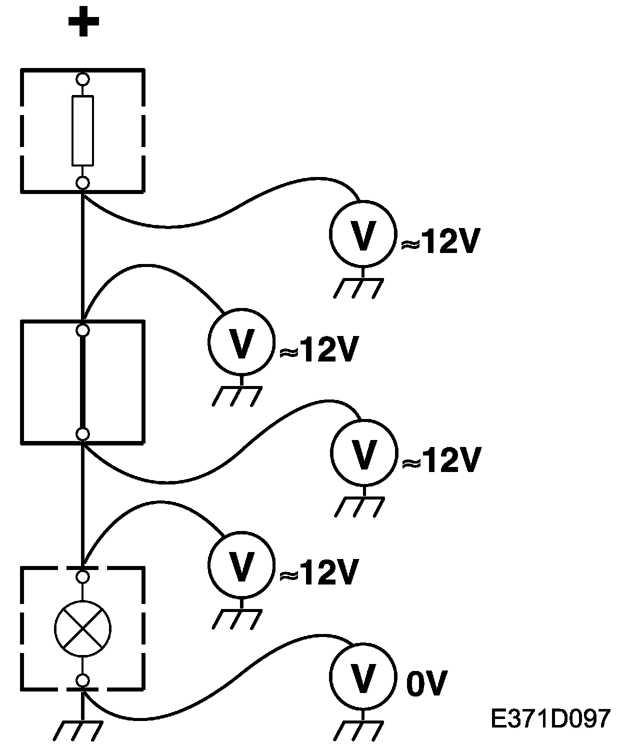 3. Connect one test lead to a good ground and the other to the point to be tested.
