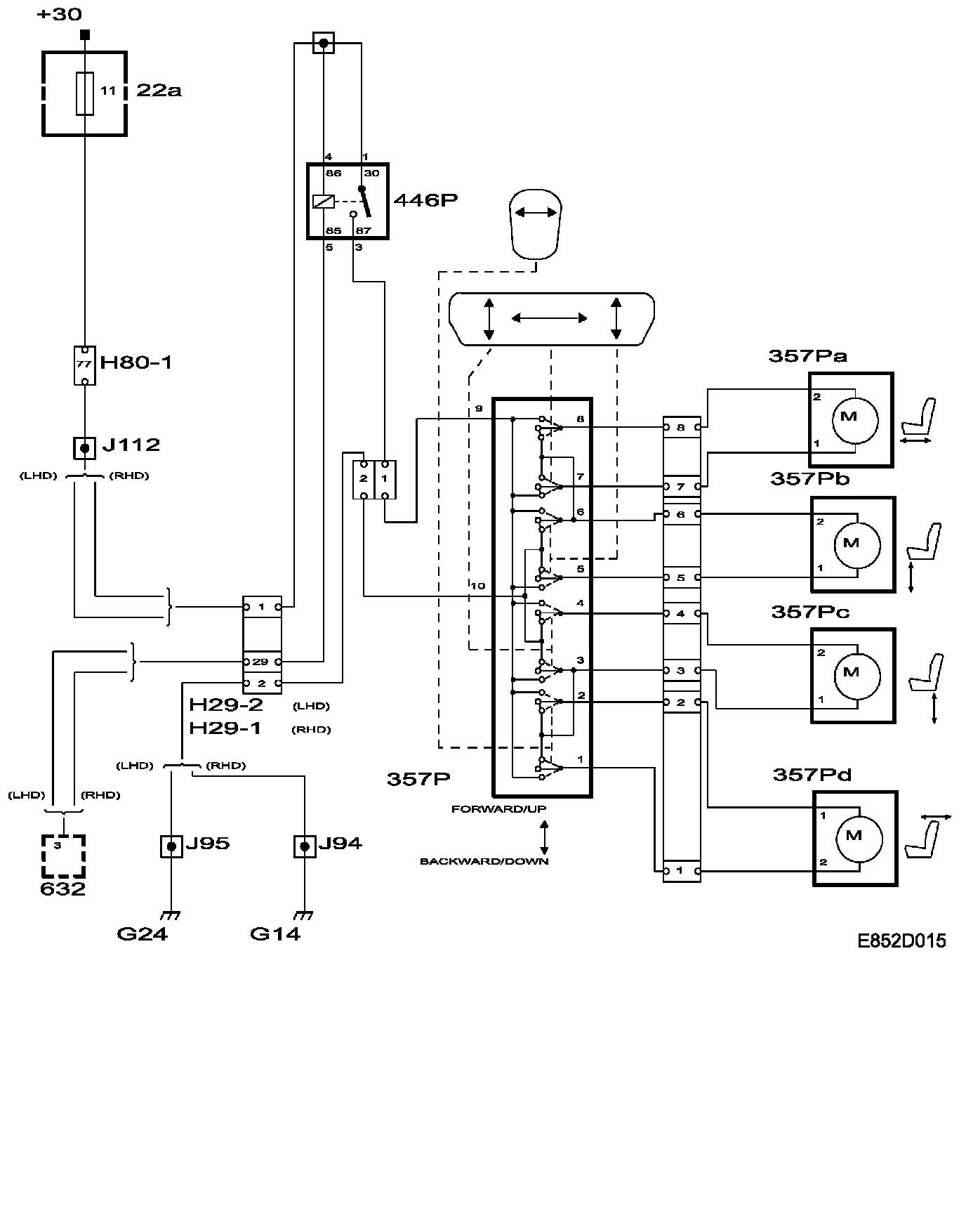 - electric motor (357Pa) moves the seat forwards or backwards