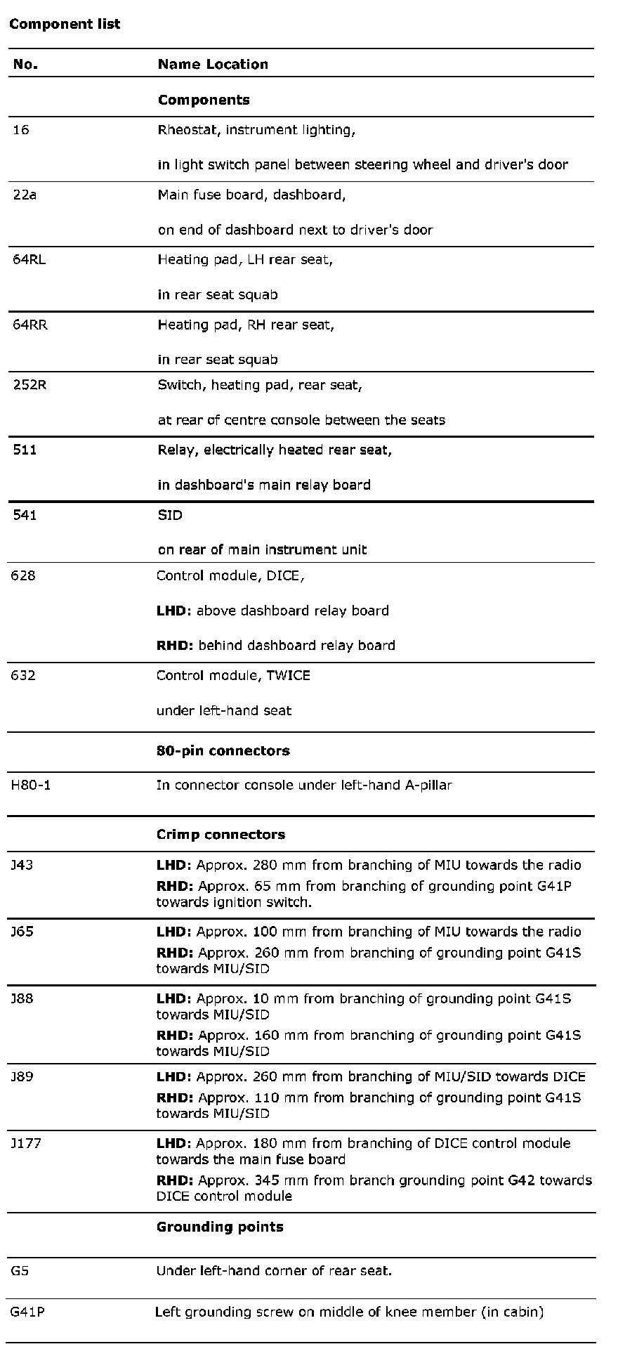 Component List: