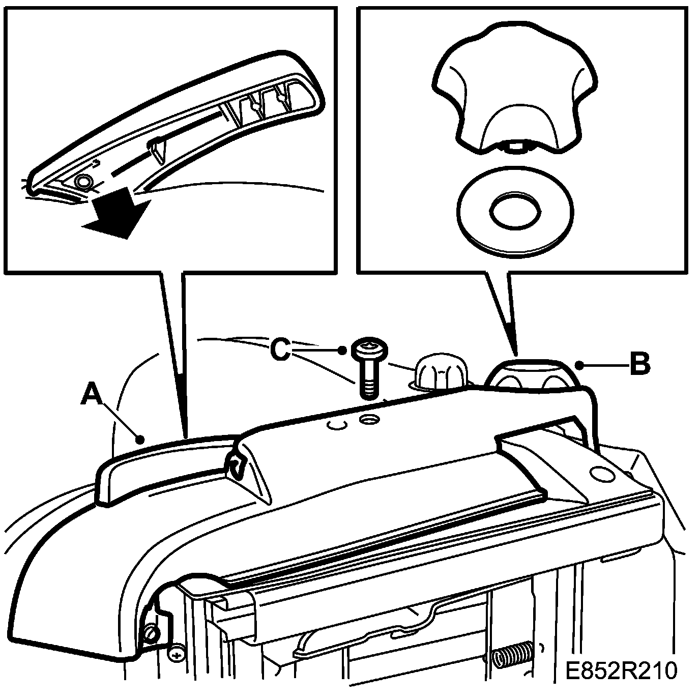 2. Fit the upper seat cowl, 3 screws and 2 covers (C).