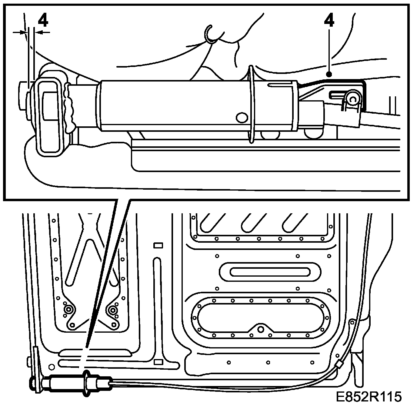 Check the function of the lock by inspecting the position of the locking pin, see illustration. The pin should be edge to edge with the welded joint. Adjust with the adjuster screw if necessary.