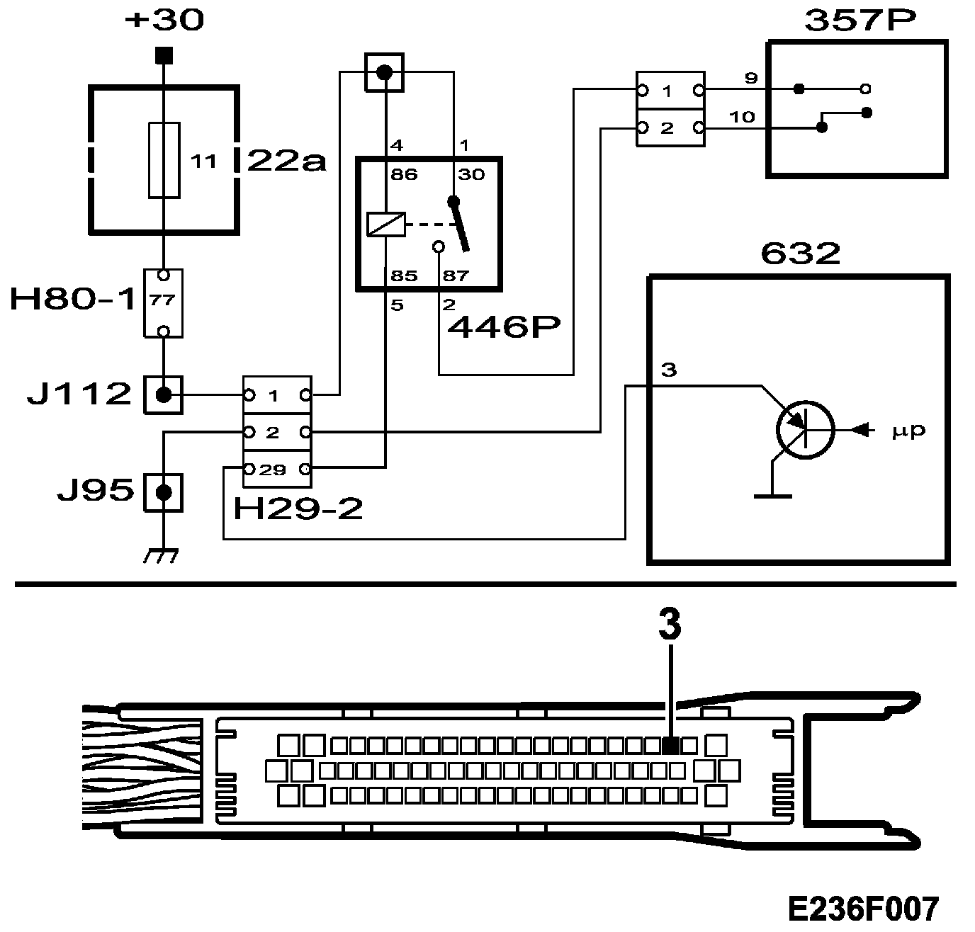If the seat cannot be operated, the fault probably lies in the relay (446P), the switch (357P) or the wiring harness. Also check fuse 11.