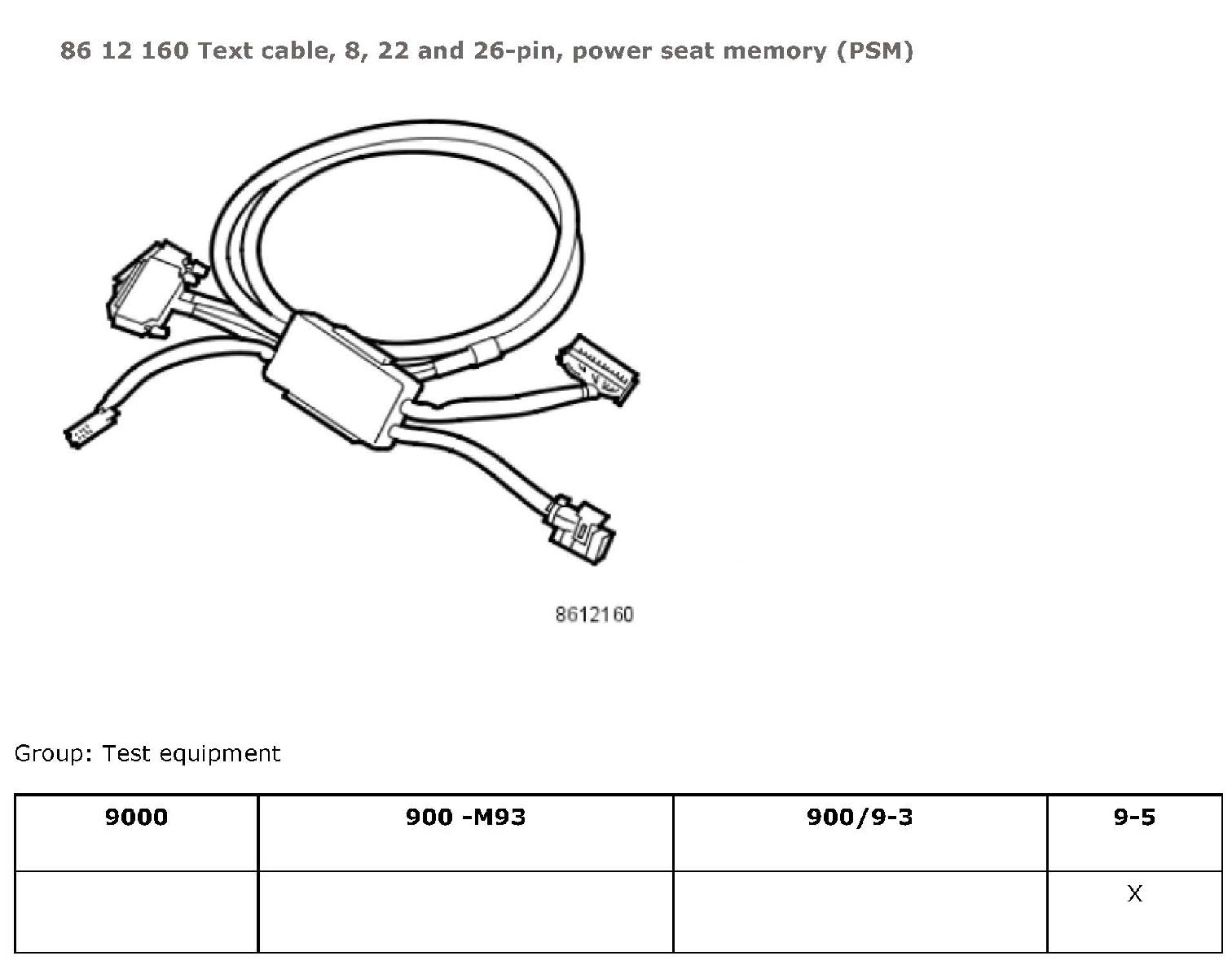 86 12 160 Text Cable, 8, 22 And 26-pin, Power Seat Memory (PSM):