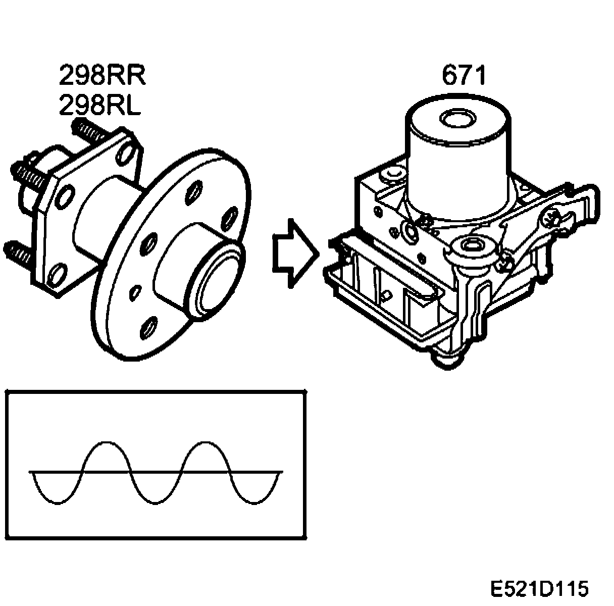 The proximity sensor works like a small alternator, the sine-wave voltage of which increases with increasing wheel speed. The sine-wave voltage alternates between positive and negative polarity, which is achieved by alternate teeth and gaps on the toothed wheel. By measuring the frequency, the control module can determine the speed of each wheel.