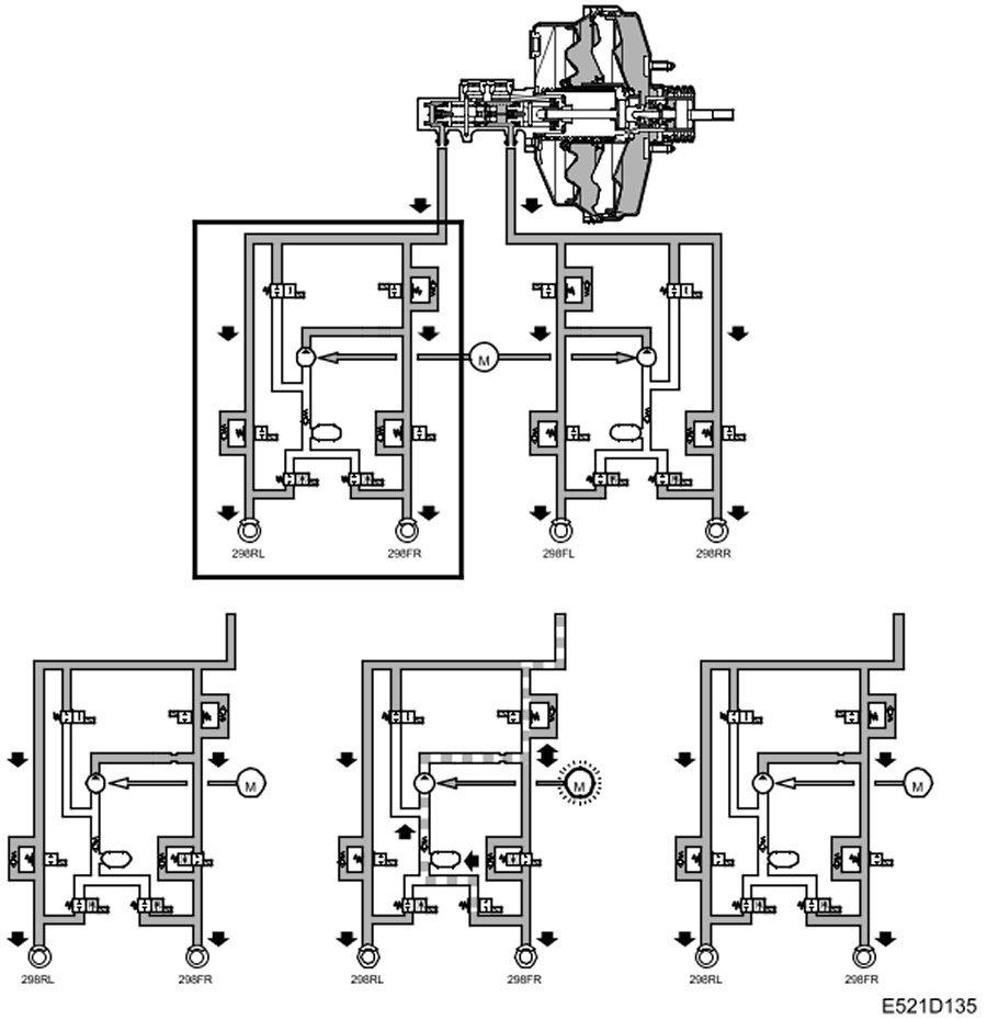 ABS modulation is activated when the system detects that a wheel or wheels exceed the permitted slip limit. The control module receives information on wheel speed. If the slip limit is exceeded, the control unit modulates the braking force with the aid of solenoid valves. The braking force is regulated separately for each wheel.