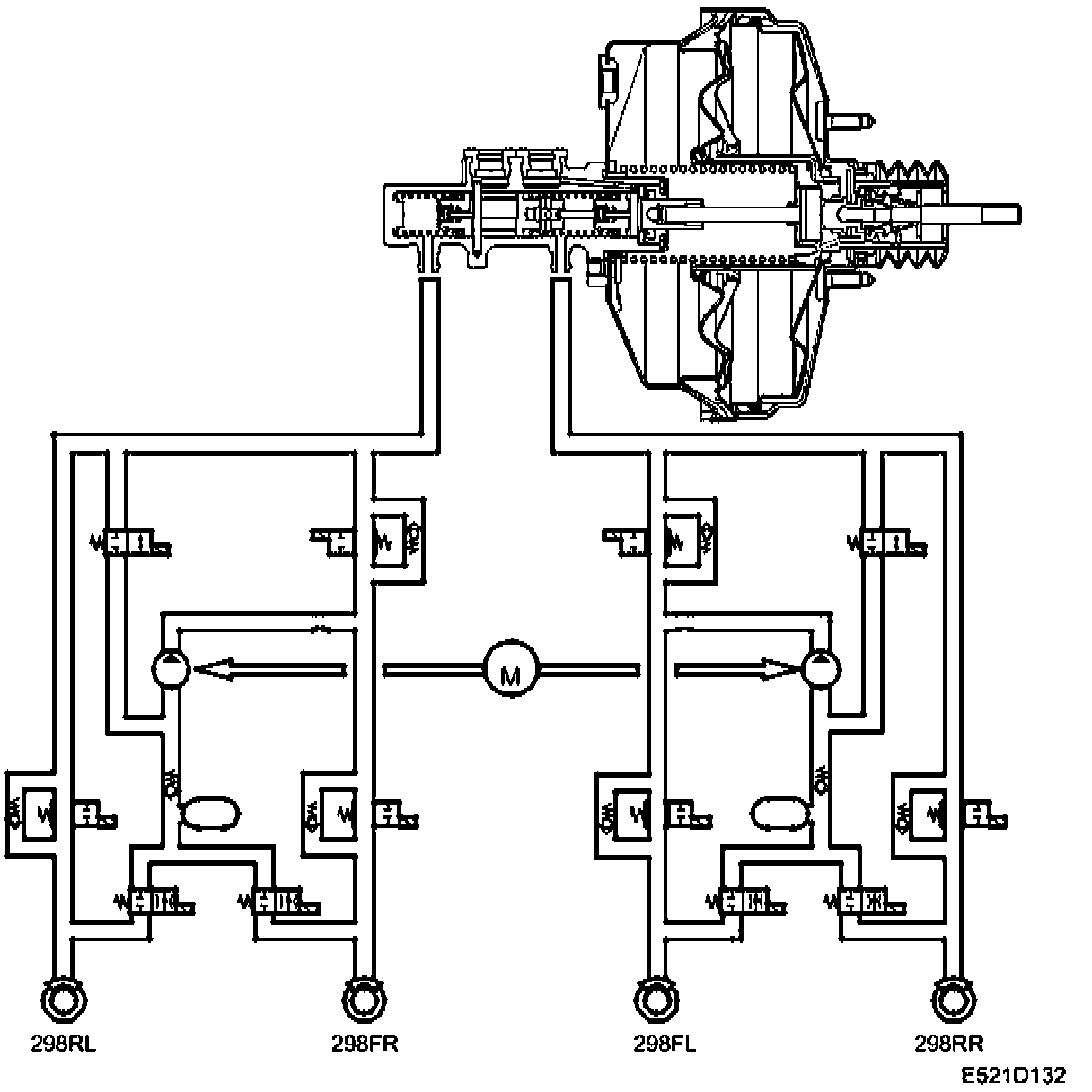 The master cylinder and other hydraulic components are filled with brake fluid under zero pressure.