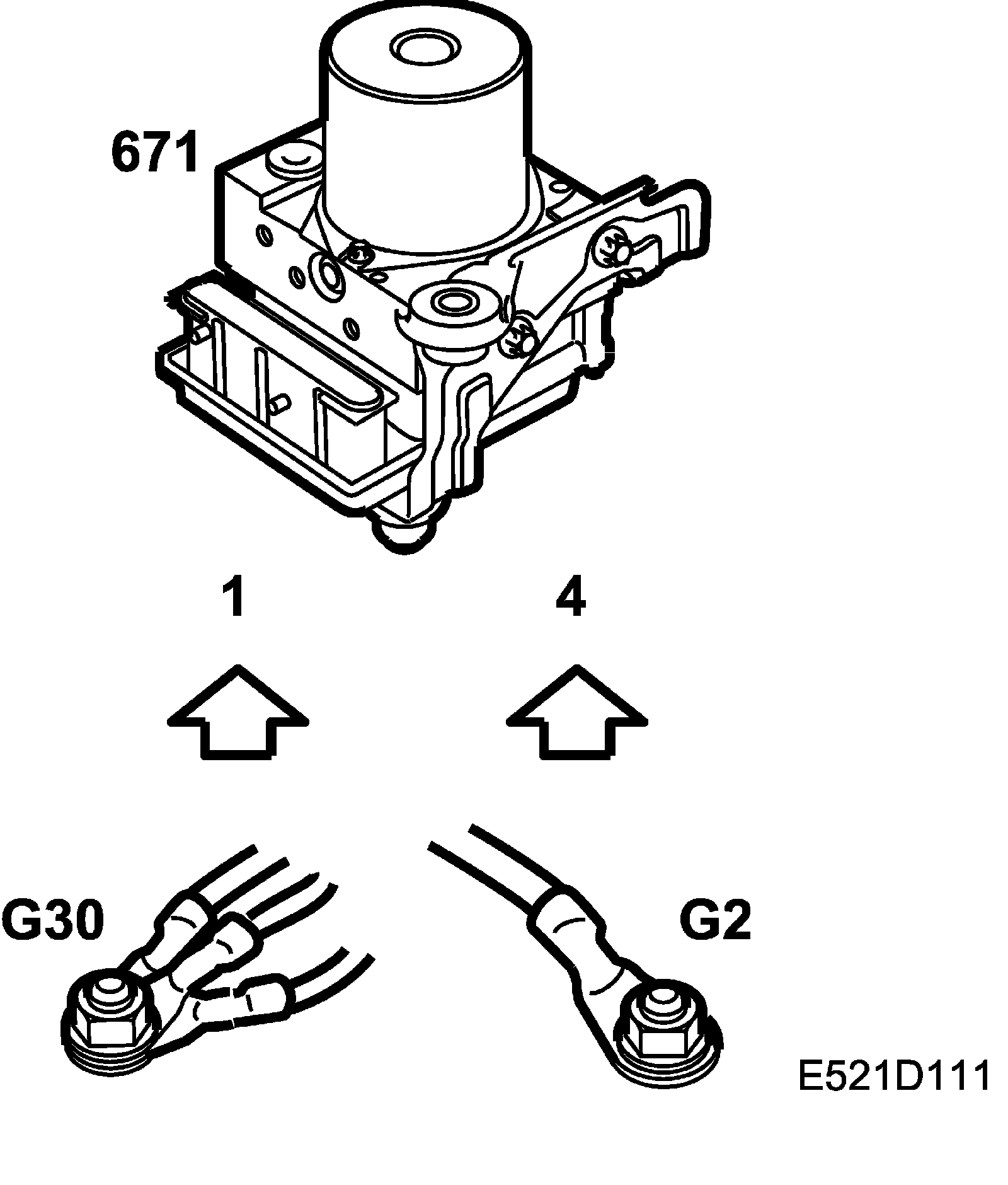 The pump motor is grounded through pin 1 to grounding points G30 and G40 (G42 RHD).