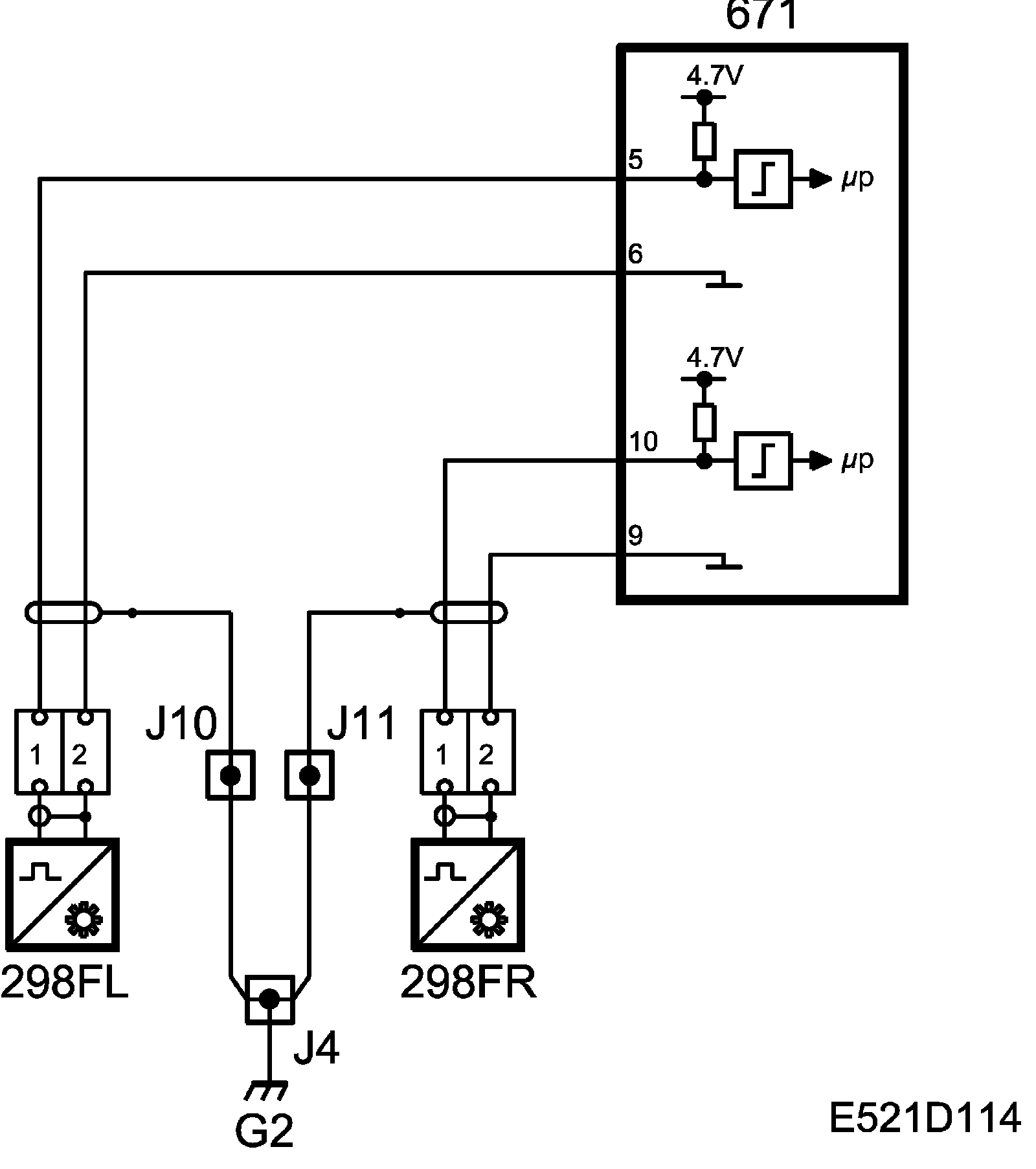 Mounted on the right-hand and left-hand outboard drive shaft CV joints is a toothed wheel with 29 teeth. A sensor of inductive type is mounted on each steering swivel member. The gap between sensor and toothed wheel must be 0.3-1.3 mm and is not adjustable.