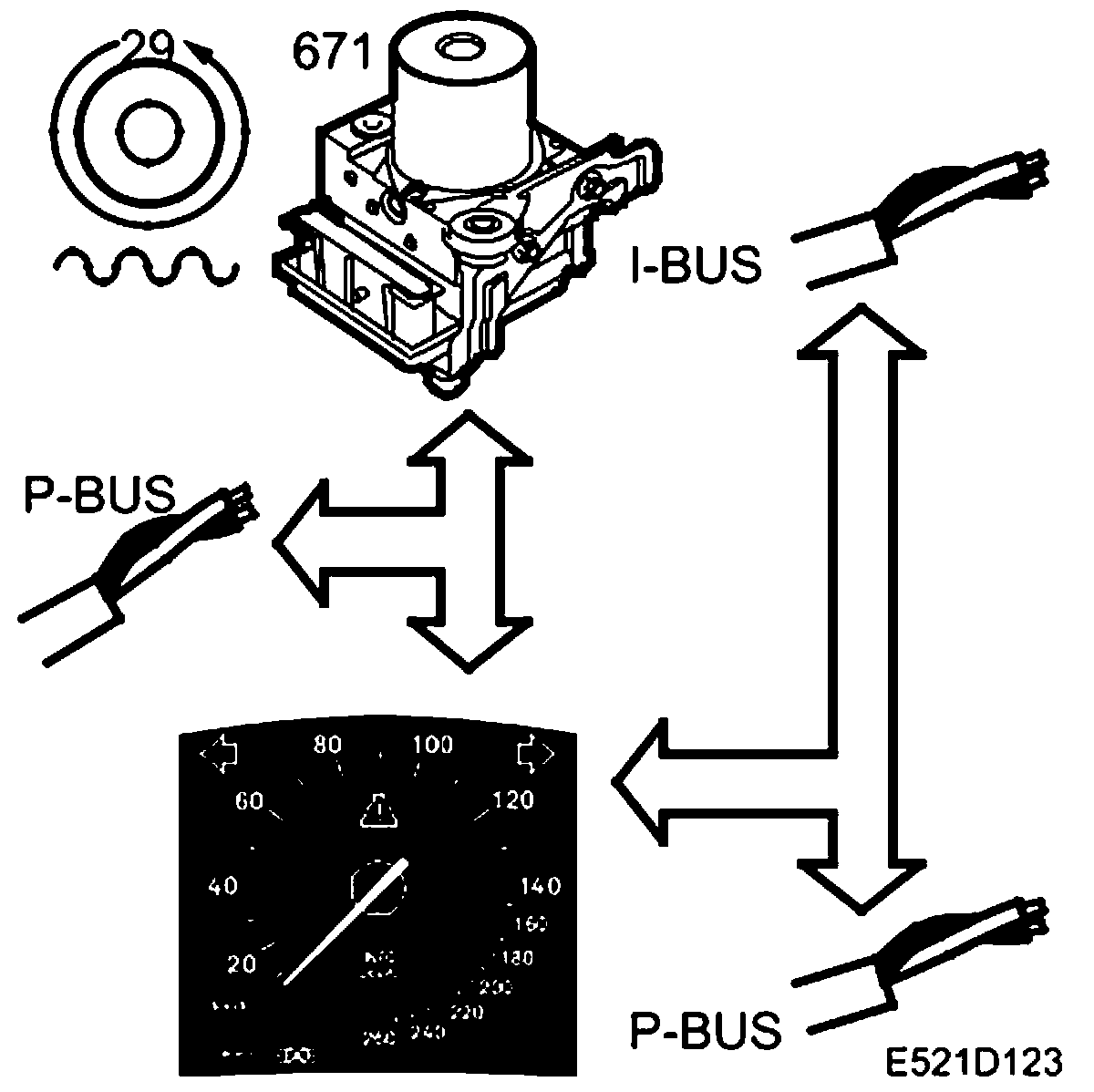 Several other systems in the vehicle need to know the wheel speed. The ESP control module is connected to the P-bus and transmits information about the speed of each wheel.
