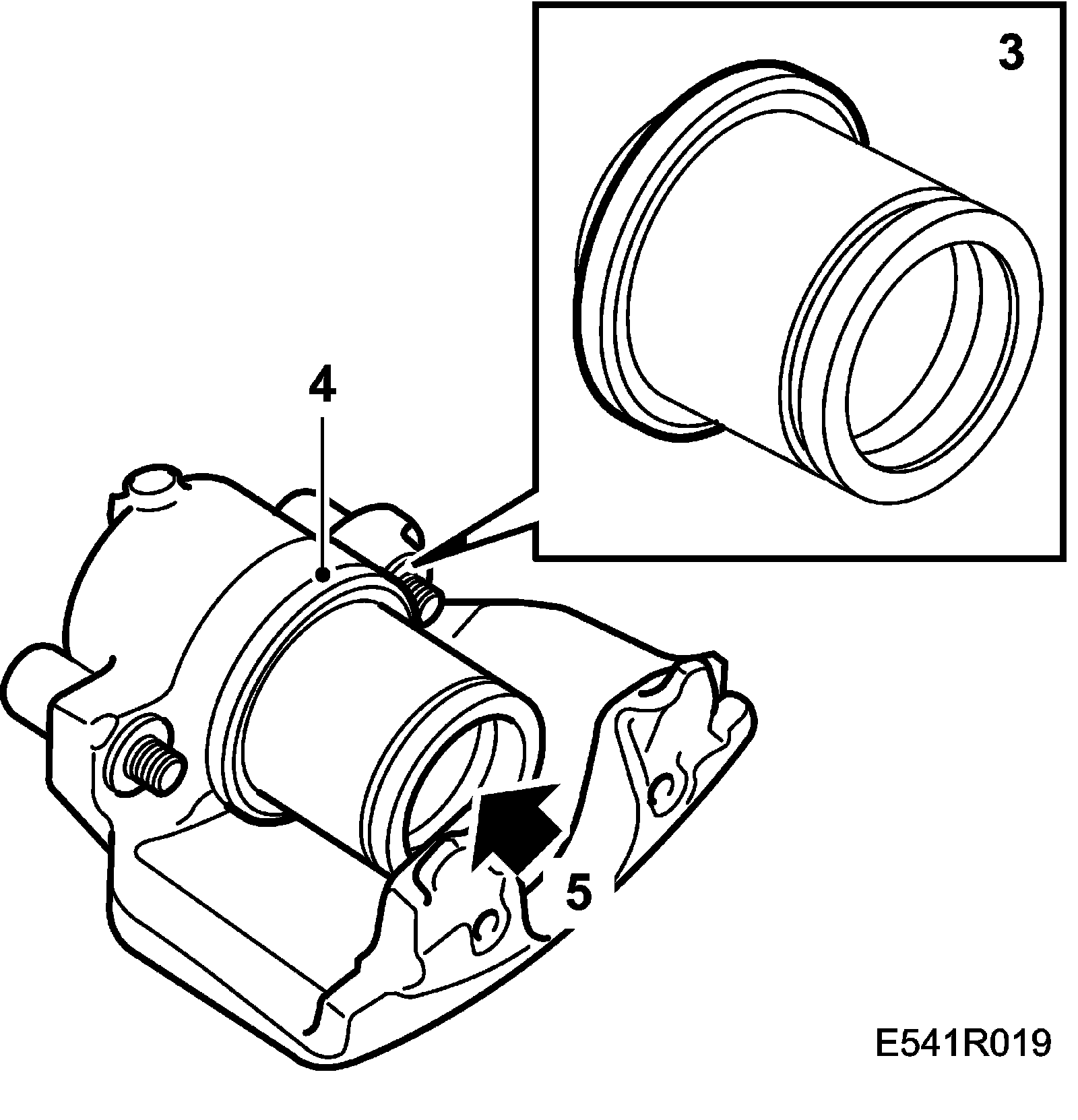 5. Press the piston into the brake cylinder by such an amount that the dust cap fastens in the brake piston's groove.