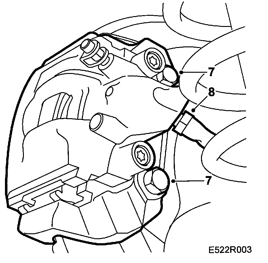7. Remove the dust caps and the two brake caliper guide pins and lift away the hydraulic body.