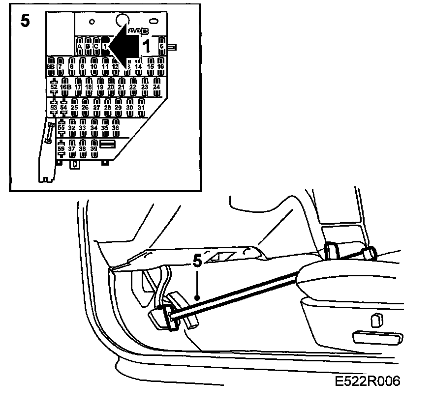 5. Lower the car slightly, remove the brake pedal clamp and put the fuse back in its holder.