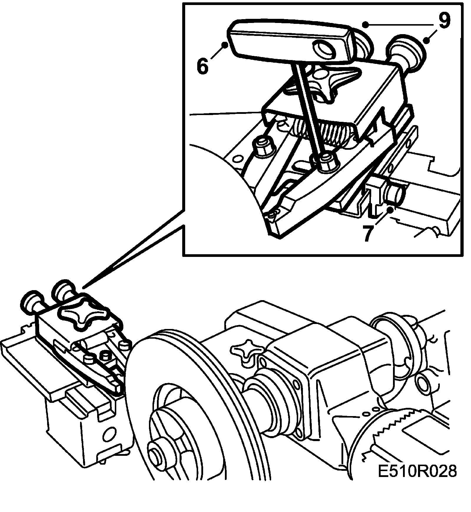 6. Adjust the turning tools against the disc with the tool holder. Remove the locking screw and move the holder.