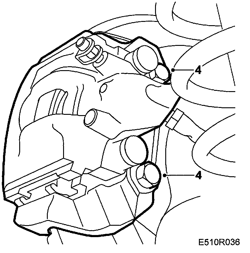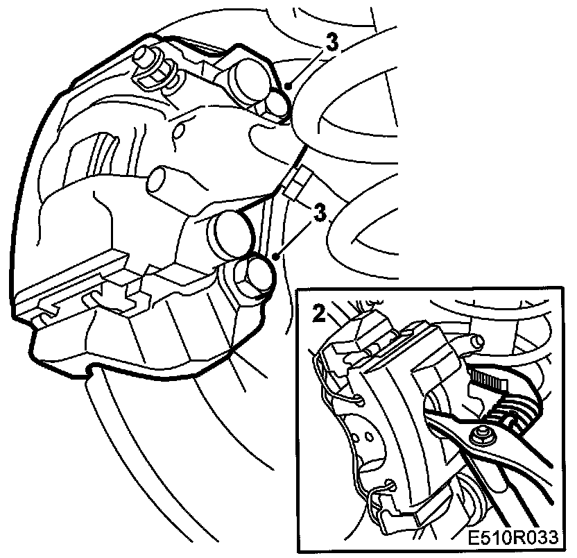4. Apply Loctite 242 no. 74 96 268 to the brake caliper retaining bolts, fit the brake caliper and secure the brake pipe.