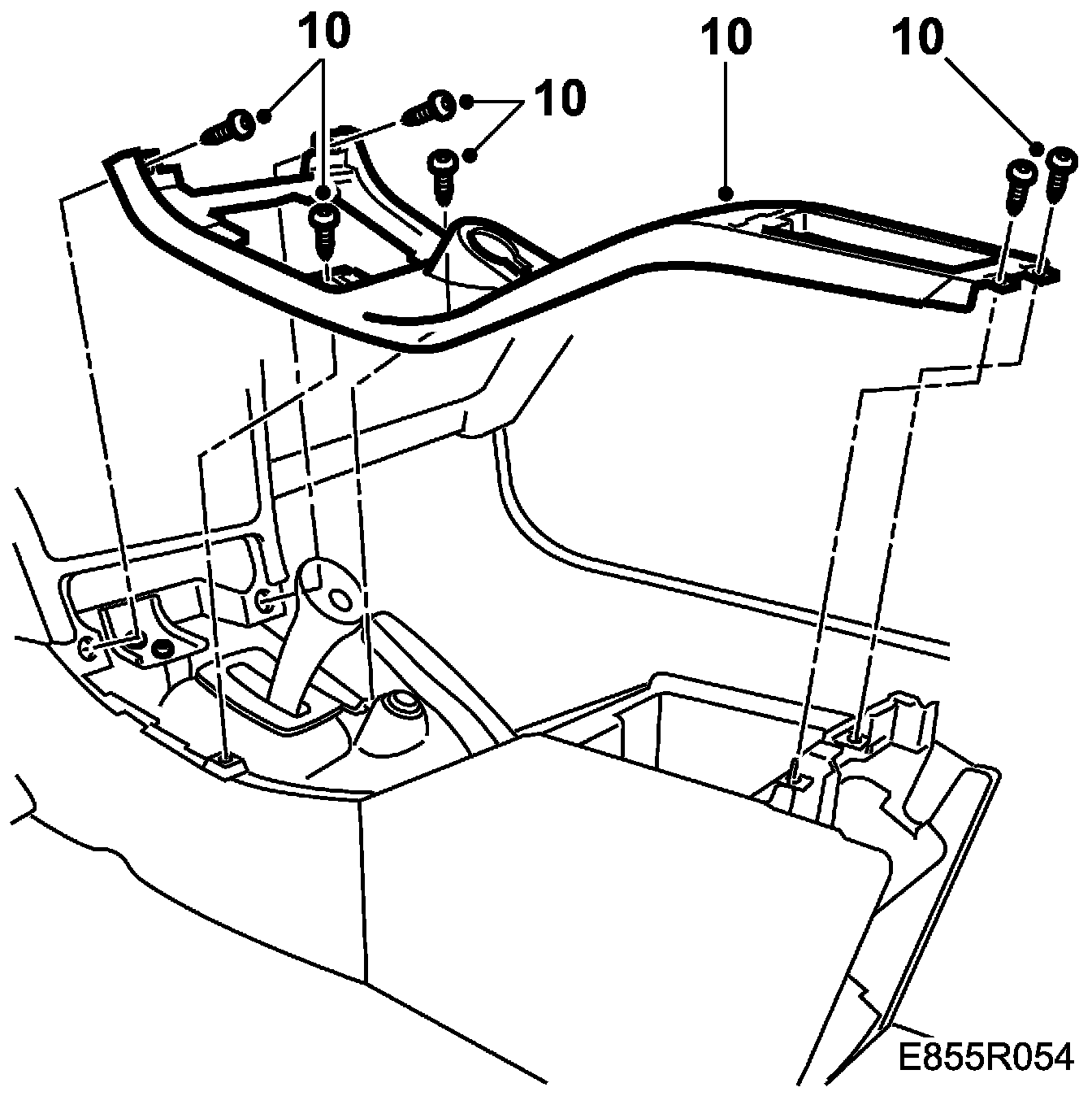 10. Remove the screws holding the upper part of the centre console, 6 screws.